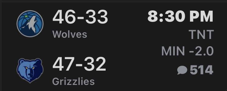 There’s obviously a lot of moving pieces left, but Minnesota has 2 very easy games after this (Jazz and Nets) and would be in good shape to avoid the 8 seed with a win tonight.