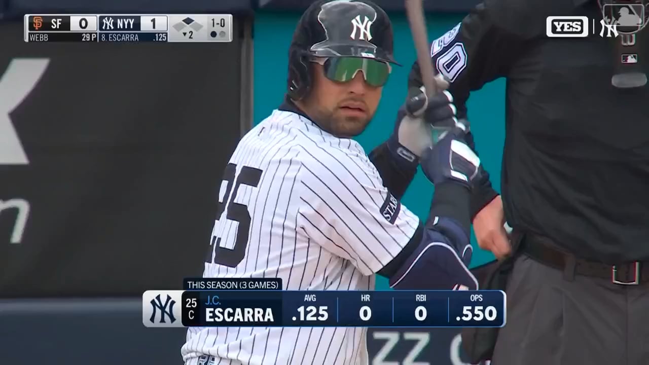 Former Uber Driver JC Escarra hits a double for his first MLB RBI and hits the steering wheel celebration