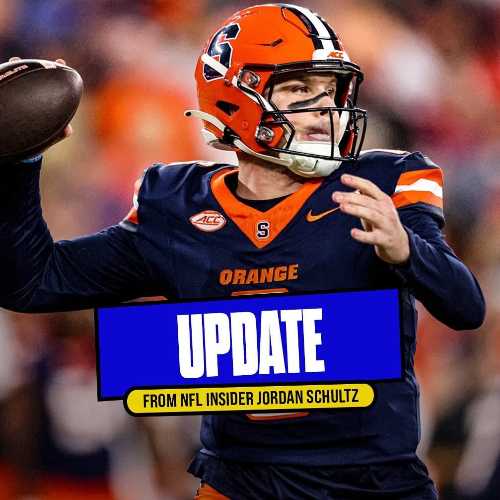[Schultz] Sources: Syracuse QB Kyle McCord is visiting the Steelers today and the Giants tomorrow. McCord, who led the nation in passing last season, has acquitted himself well throughout the draft process with a series of good interviews and impressive on-the-board work.