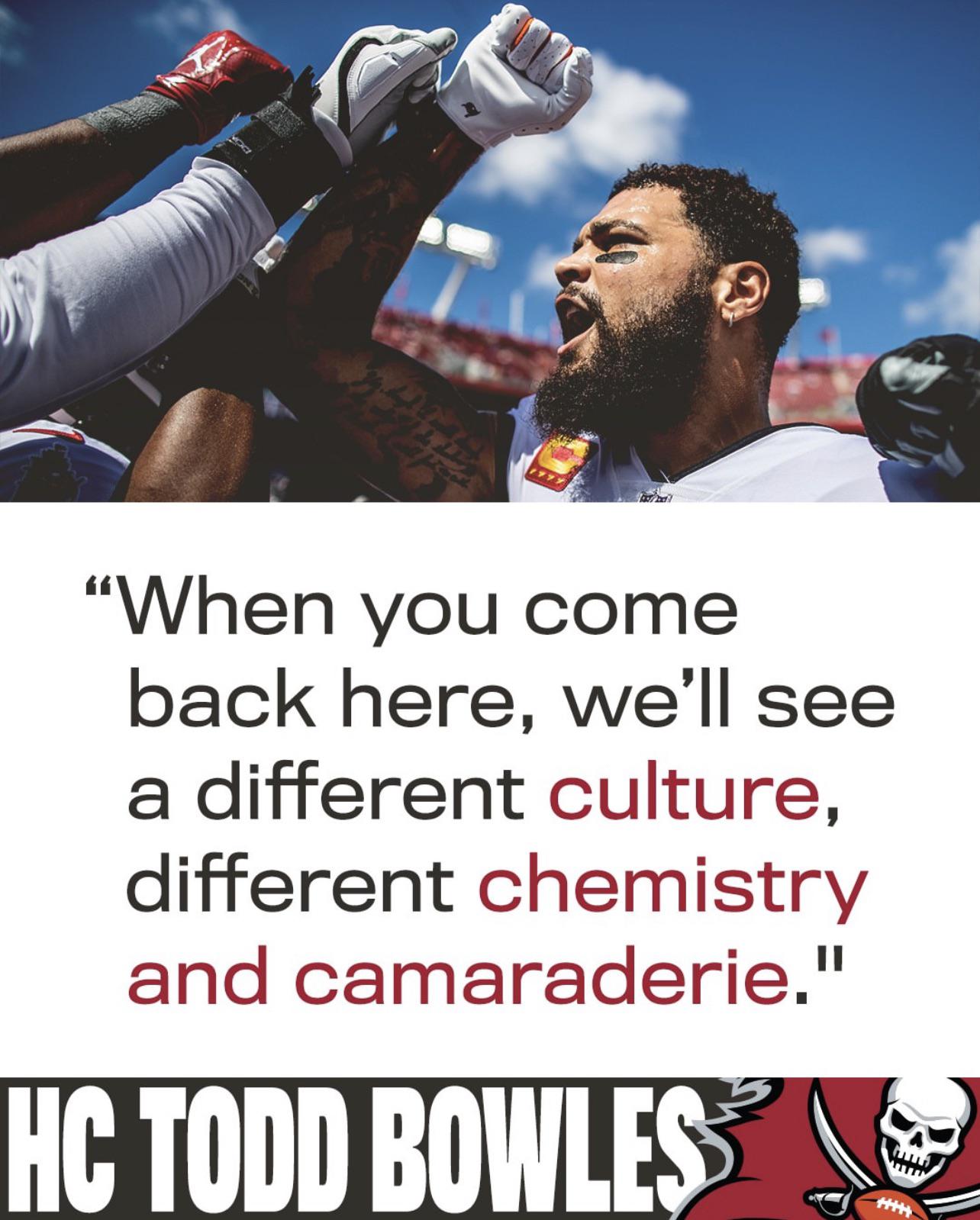 So he’s admitting that he let the culture go to hell after arians stepped down? It’s on the head coach to set the culture, unfortunately Bowles has the charisma and leadership skills of a sock