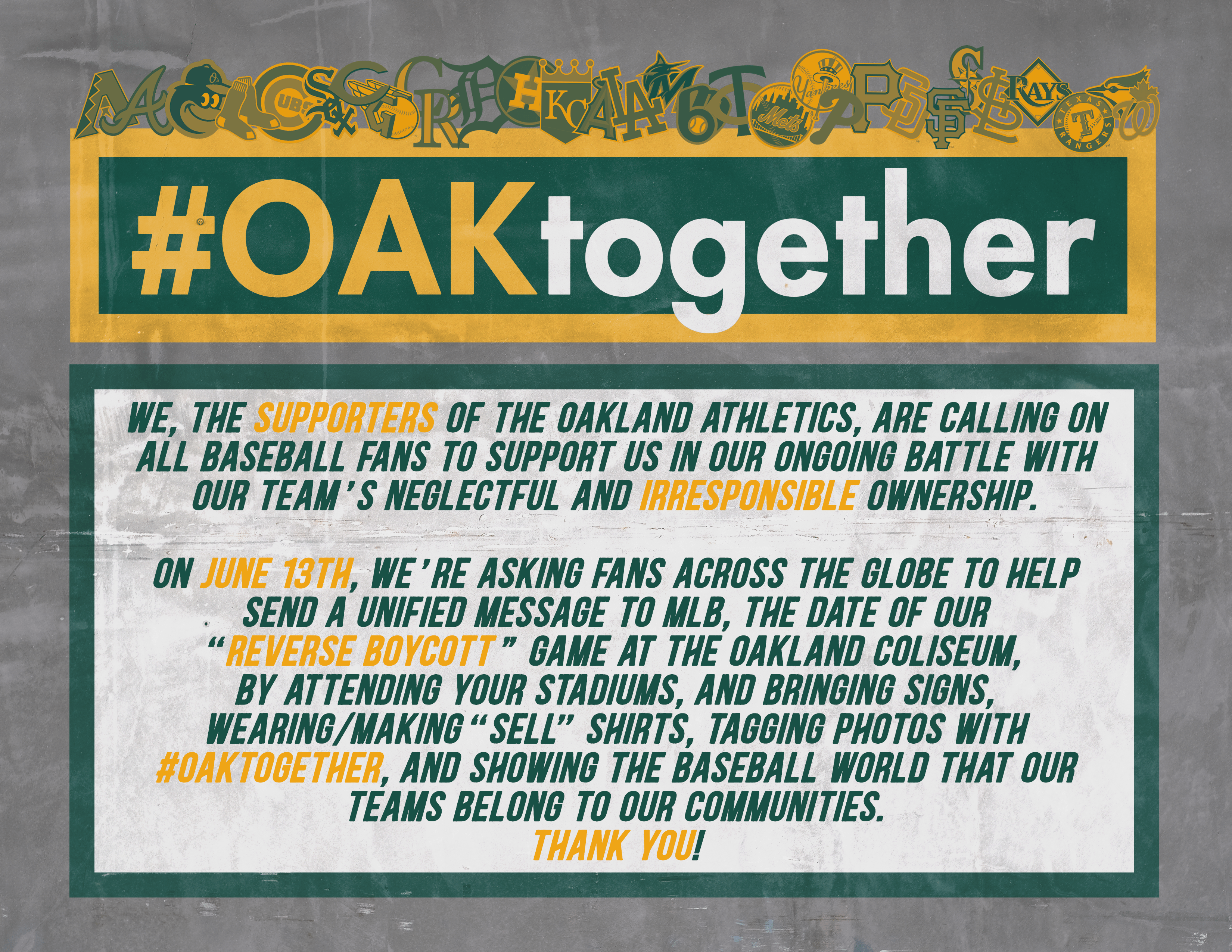 Show solidarity with Oakland A’s fans this Tuesday June 13! #OAKtogether