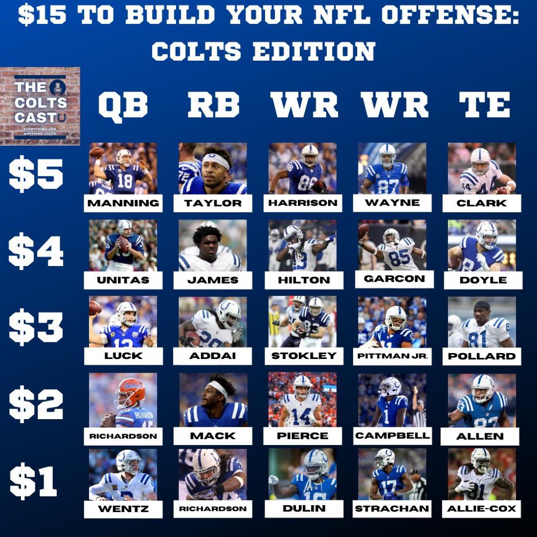 Manning and Marvin. You can then interchange the last $5 on any 3 you want. I’d probably go Mack, Mo, and Pierce (Peyton would turn him into a stud). You can put together something on paper using Unitas or Luck that will look better but nothing else will come close to starting with Marv and Peyton