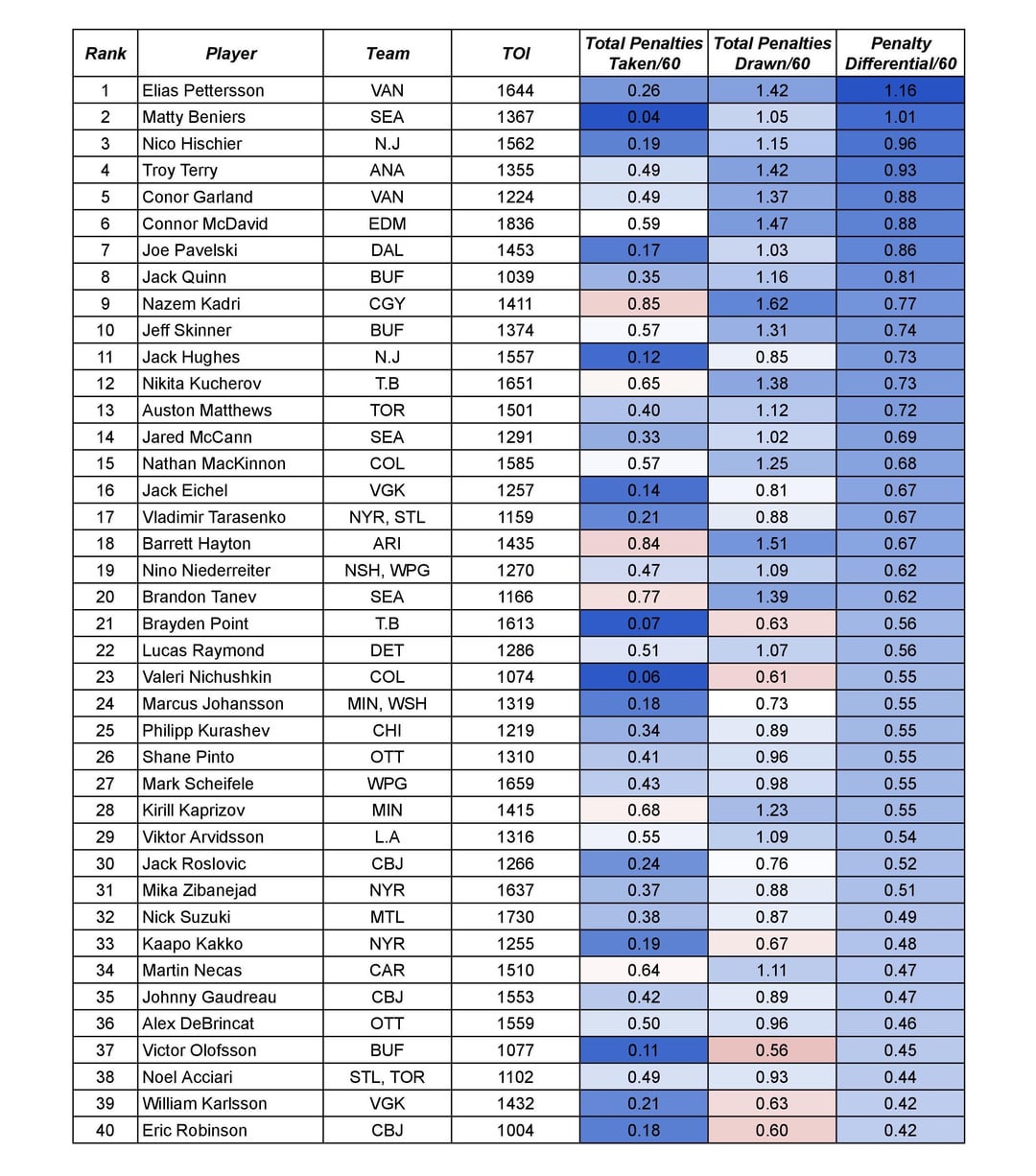 Qualified 2022/23 NHL Forwards Top and Bottom 40 sorted by Penalty Differential. See who is putting their team on the PP rather than the PK at the highest rate.