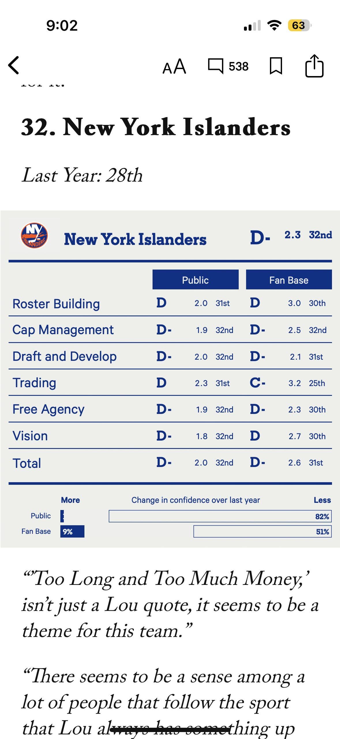 The Athletic releases their front office confidence rankings: we’re dead last in the NHL