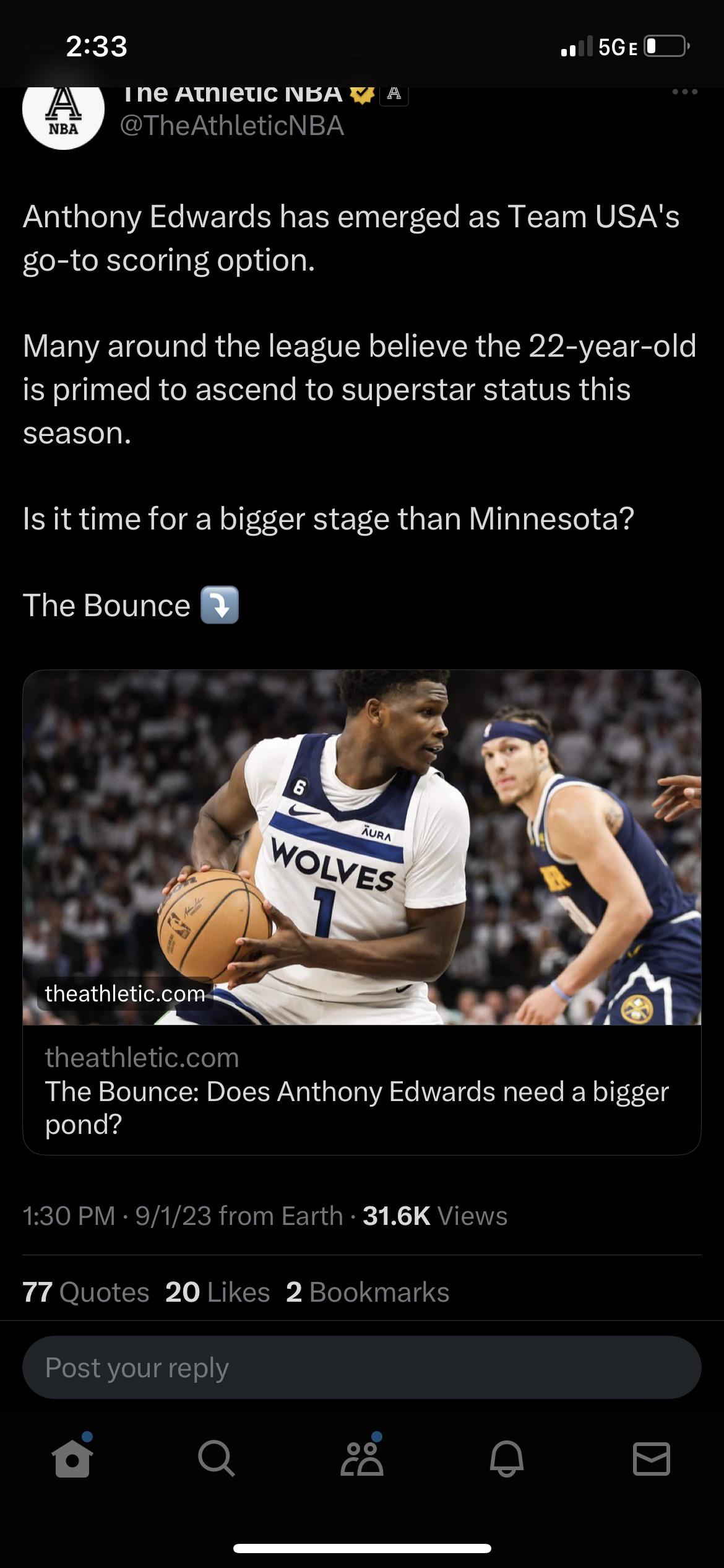 Its like all these casual basketball fans are just learning of Ant, and the first thing they think of is “oh he plays for Minnesota?”