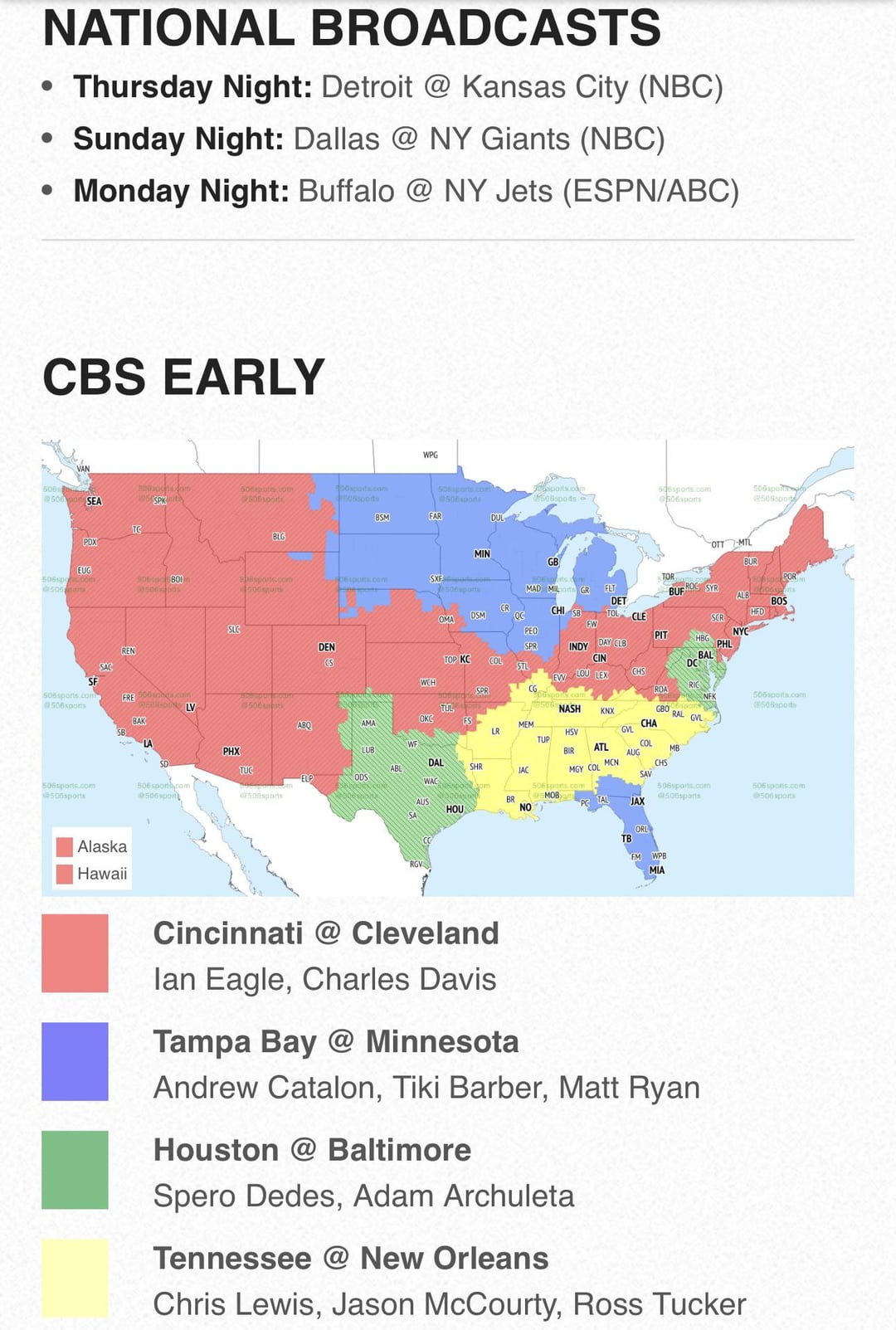 Well, I’ll be in a sports bar and won’t be able to hear the announcers anyway, so that’s fine with me. Here in Indy we’re going to get Cleveland/Cincinnati instead of the Vikes.