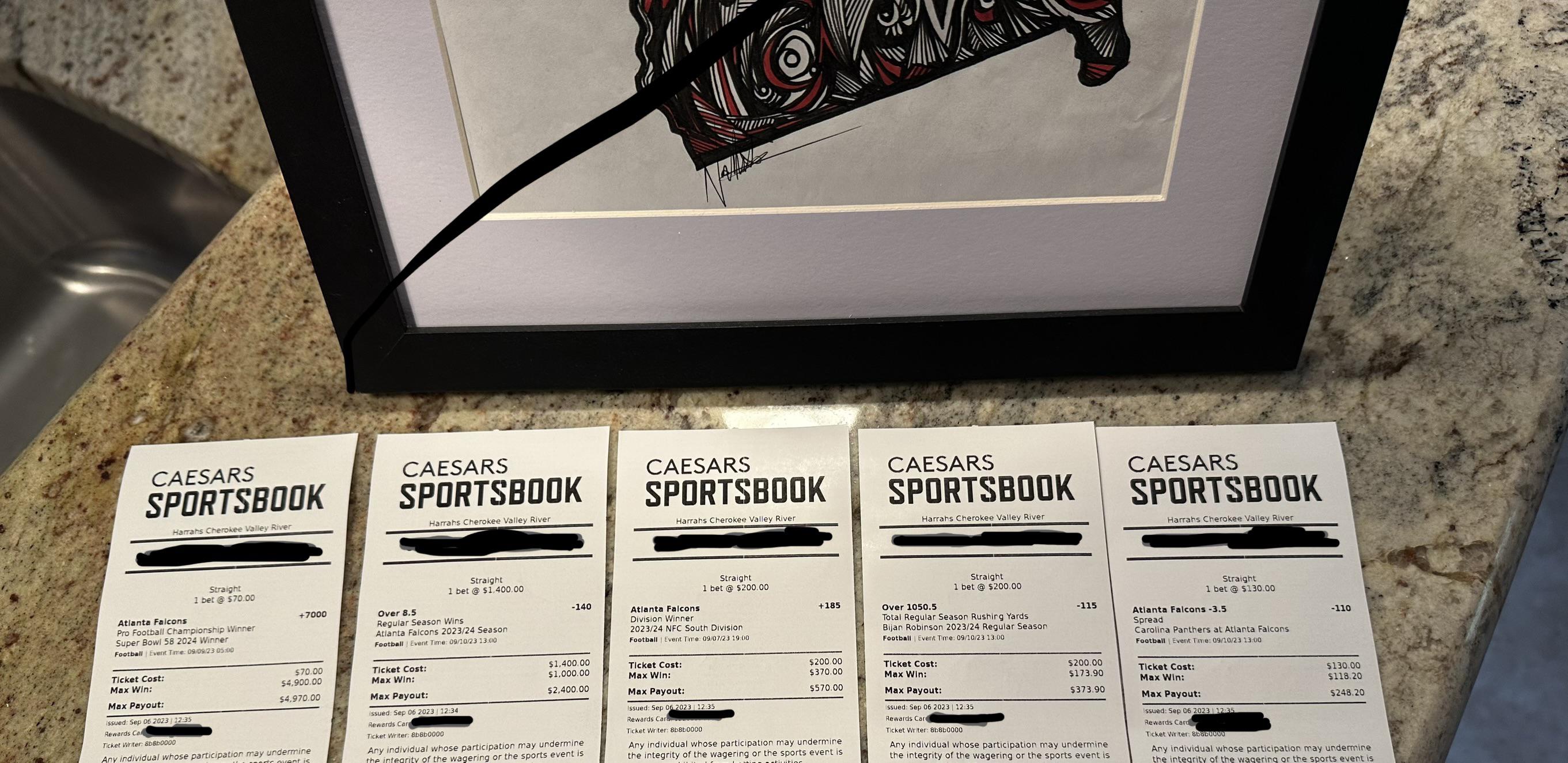 Let’s go!!! 14 comments Over 8.5 is the best bet in Vegas at the moment. *knocks on wood Damn that’s a lot of money. Ridley, is that you? you, sir, have a gambling solution Good luck dude! I just put $200 across a bunch of future bets myself! I’m excited as hell for this season! Lets gooo! Is this an option for people that live in GA? Would love to put a couple bucks on each of these! You definitely put money where your mouth is. Man you should’ve parlayed bets 2-4! I also took the over, NFC South, and -3 over the Panthers. We’re with you in spirit! The over on London TDs (4.5) seems like another good one That’s it! Have $1250 myself and got them at 80:1 for $50 Lets go Nice! I was in Vegas and got them at +210 to win the South, and I also took them over the panthers as part of an 8-team week one money line parlay. I’m only in Vegas twice a year, figured I’d try to make the most of it. Probably threw away $70 if we’re honest, but the other bets look solid. I love it. LFG! Leave a ReplyYou must be logged in to post a comment.
