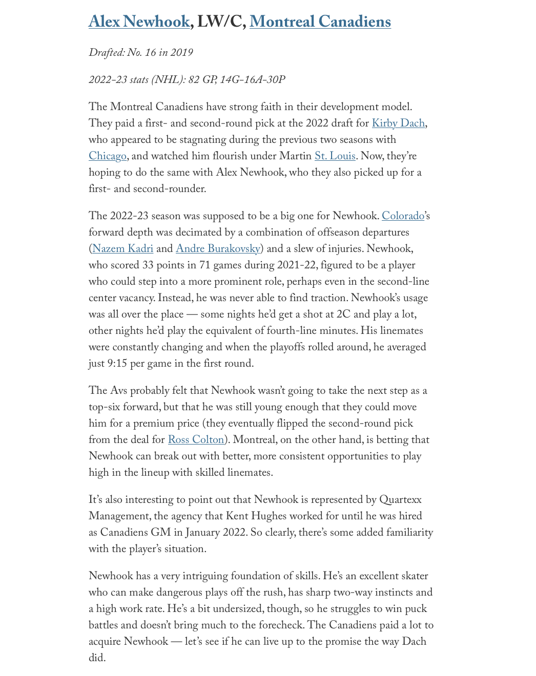 From “Draft bust or breakout candidate? 10 hotshot U23 NHL players that need to step up in 2023-24” (The Athletic) 1 comment “Promise” is a weird word to use there at the end. Leave a ReplyYou must be logged in to post a comment.