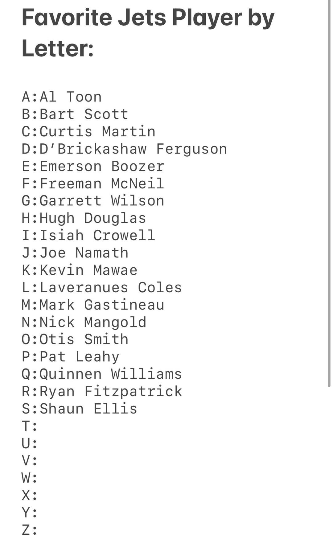 After some research I cannot find a single Jets player whose name starts with “U” so unless someone knows one they’re willing to share as a reply to this comment we are going to do a Wild Card day tomorrow