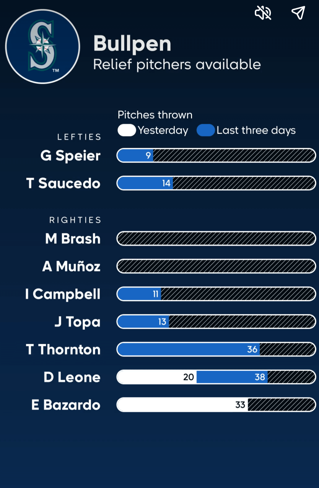 all 7 of our high leverage arms got an off day yesterday, shout out bazardo and leone for eating those innings.