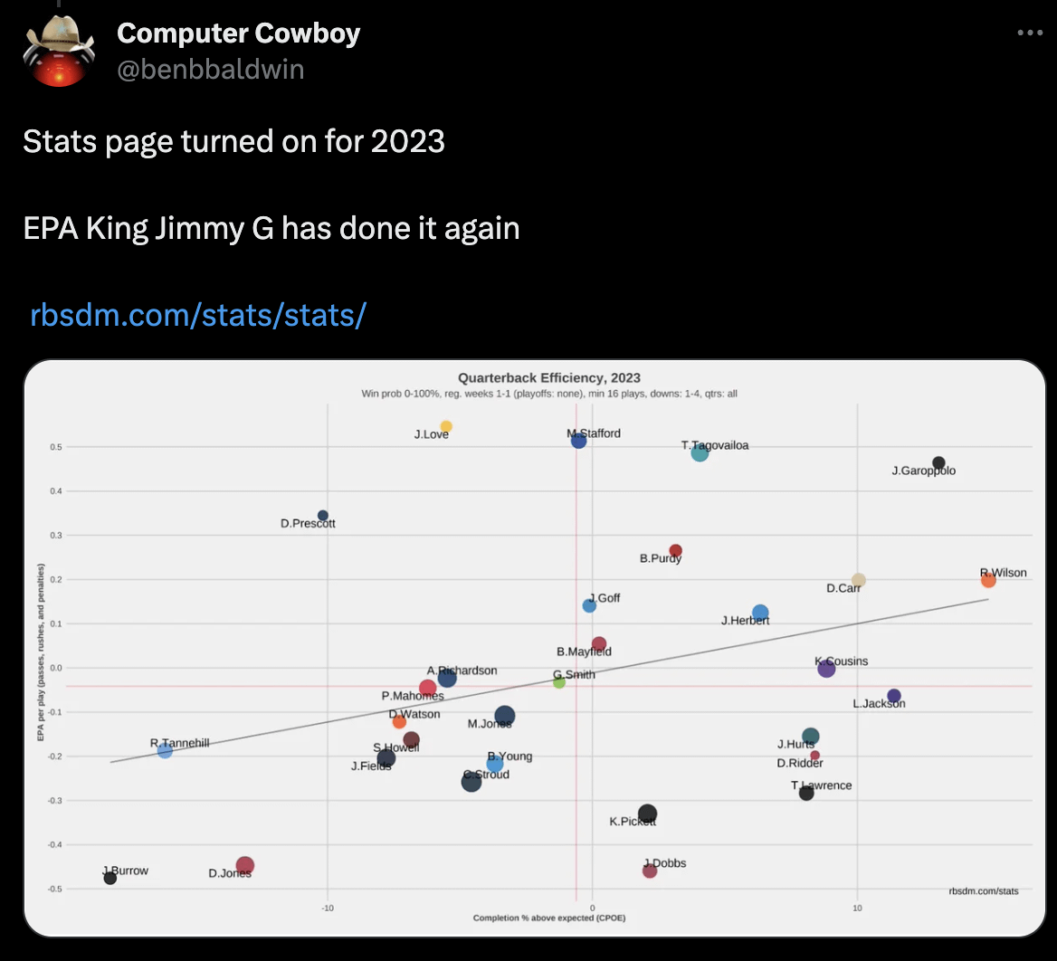 Week 1 QB Efficiency: Russ with the highest CPOE out of all QBs
