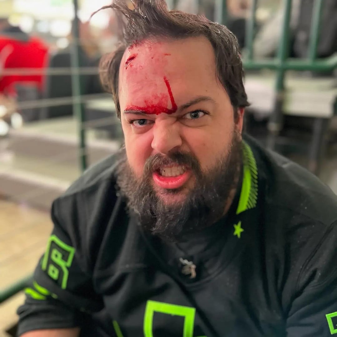 “Oh no, I got so much blood on my jersey. Can I get a new one to replace this blood covered one?”