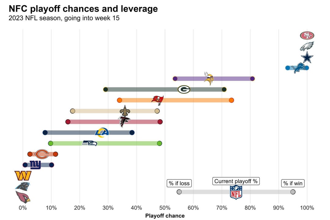 Each teams odds to make the playoffs if they win or lose, heading into week 15