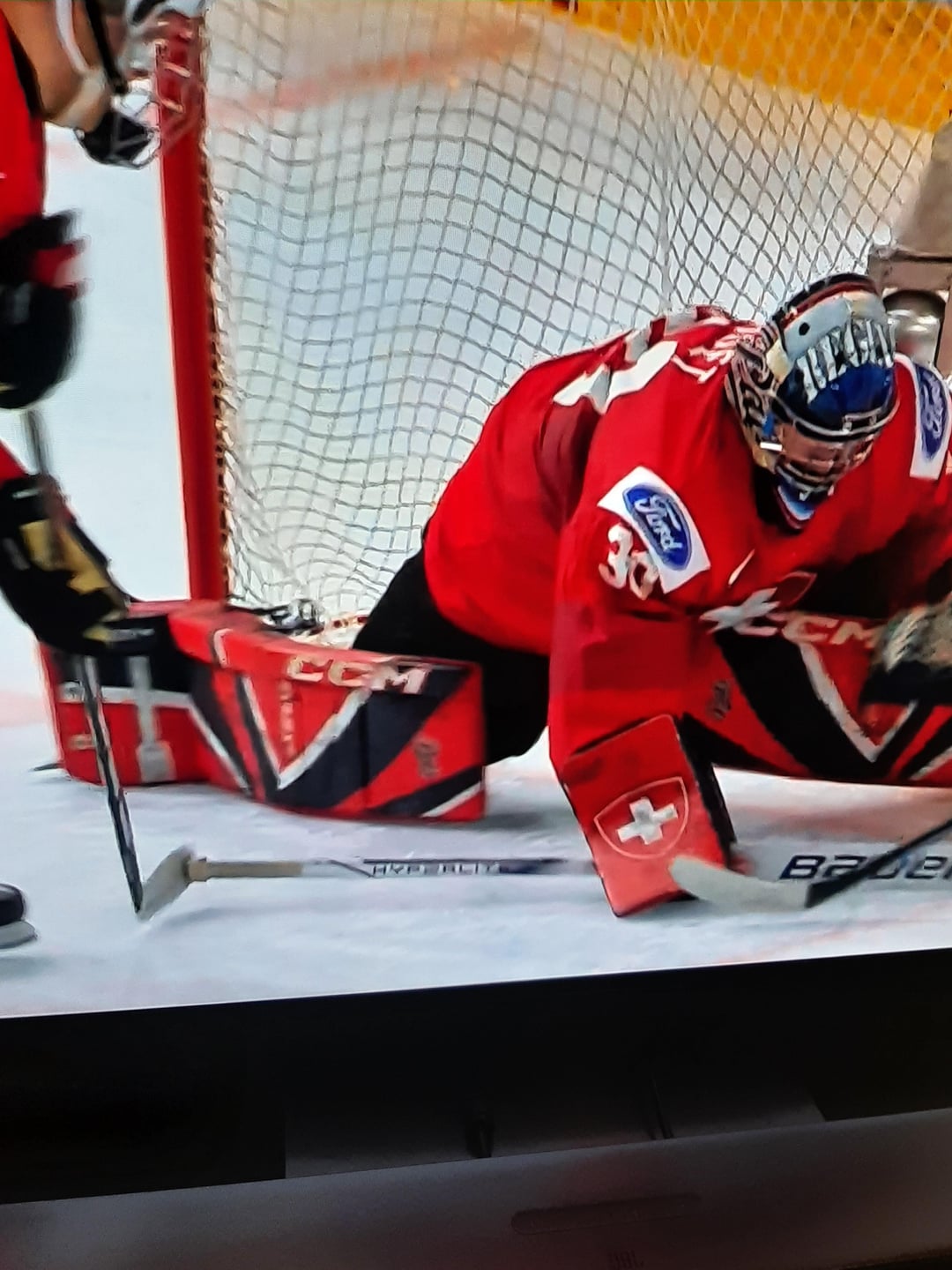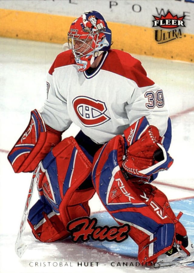 Ewan Huet, former NHLer Cristobal Huet’s son, is currently playing for Switzerland in the World Junior Championship and is wearing custom made CCM Eflex pads made to look like 2007 RBK Premiers, the pads his father wore.