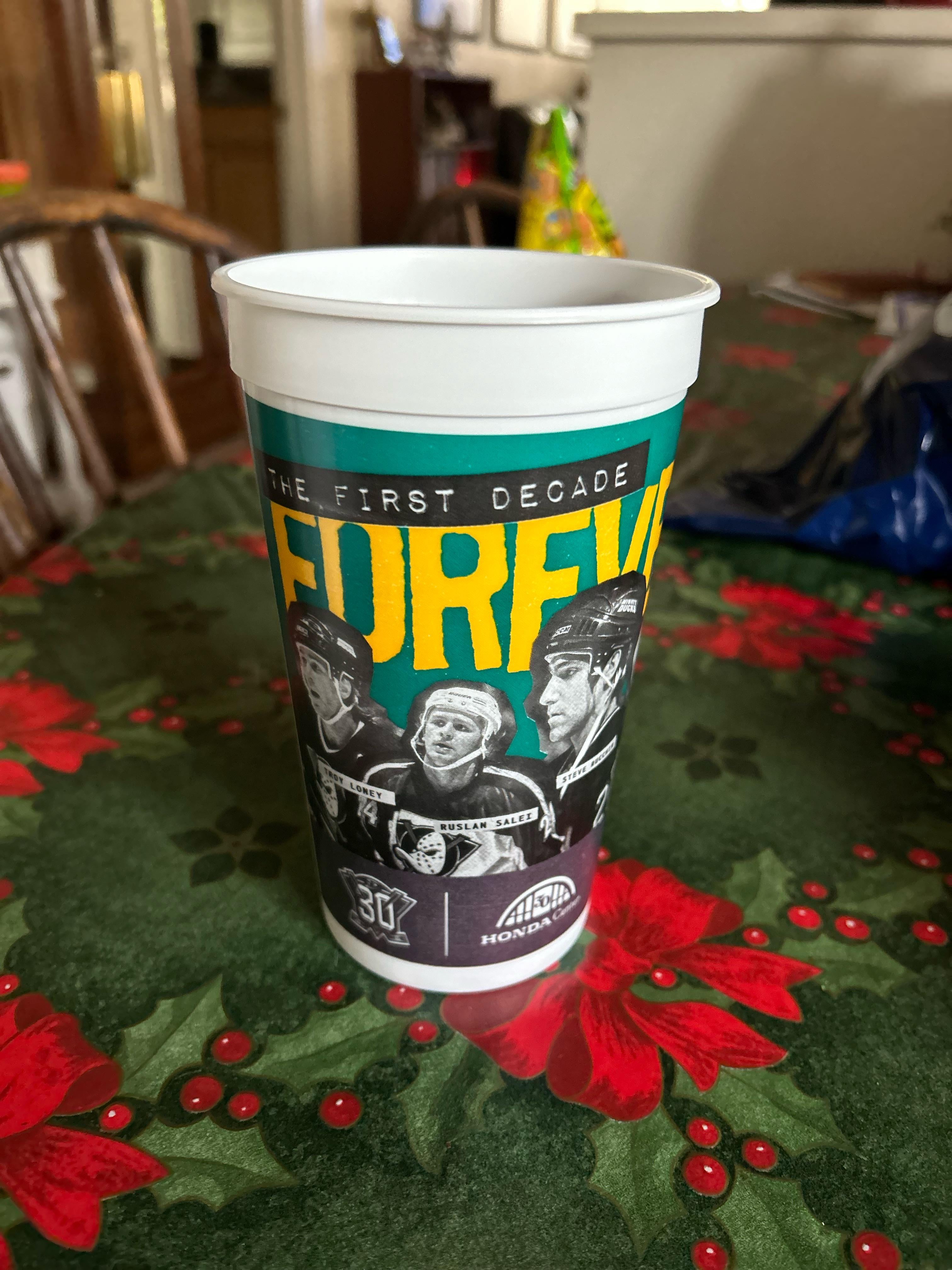 In a previous post of mine I asked about souvenir cups at the Honda Center because I had never seen them being sold in the last few years. When I finally got to a game this year I was delighted to find out that they now had souvenir cups for the 30th anniversary, and I got one for “The First Decade.” To me this seems to imply that they would have other cups for the second and third decades, but in the two games I’ve been to so far (against the Flames and Knights most recently) I’ve only seen the first decade. Does it just depend on the day which cup they sell, or maybe different cups at different places? Does anyone know if there are other cups or is it just this one? Thanks!