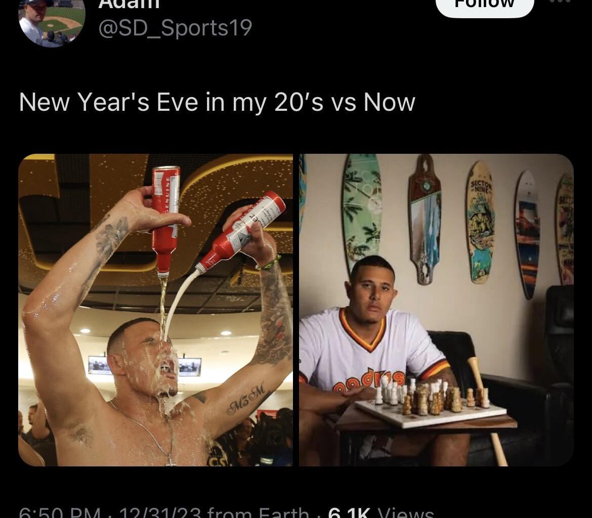 [@SD_Sports19] New Year’s Eve in my 20’s vs Now Leave a ReplyYou must be logged in to post a comment.