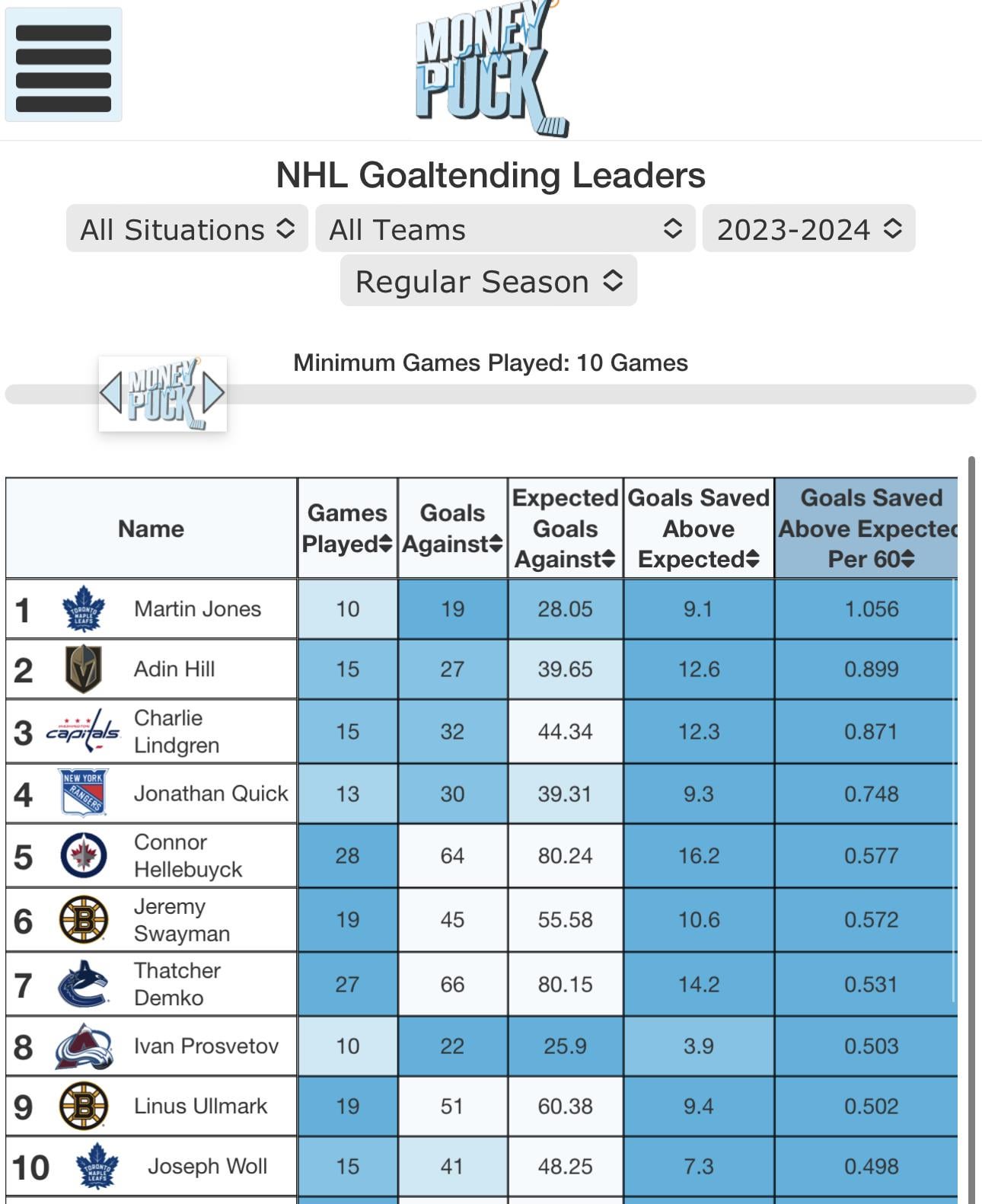 Anyone else concerned that he’s saving an entire goal above expected per game? D need to tighten up.