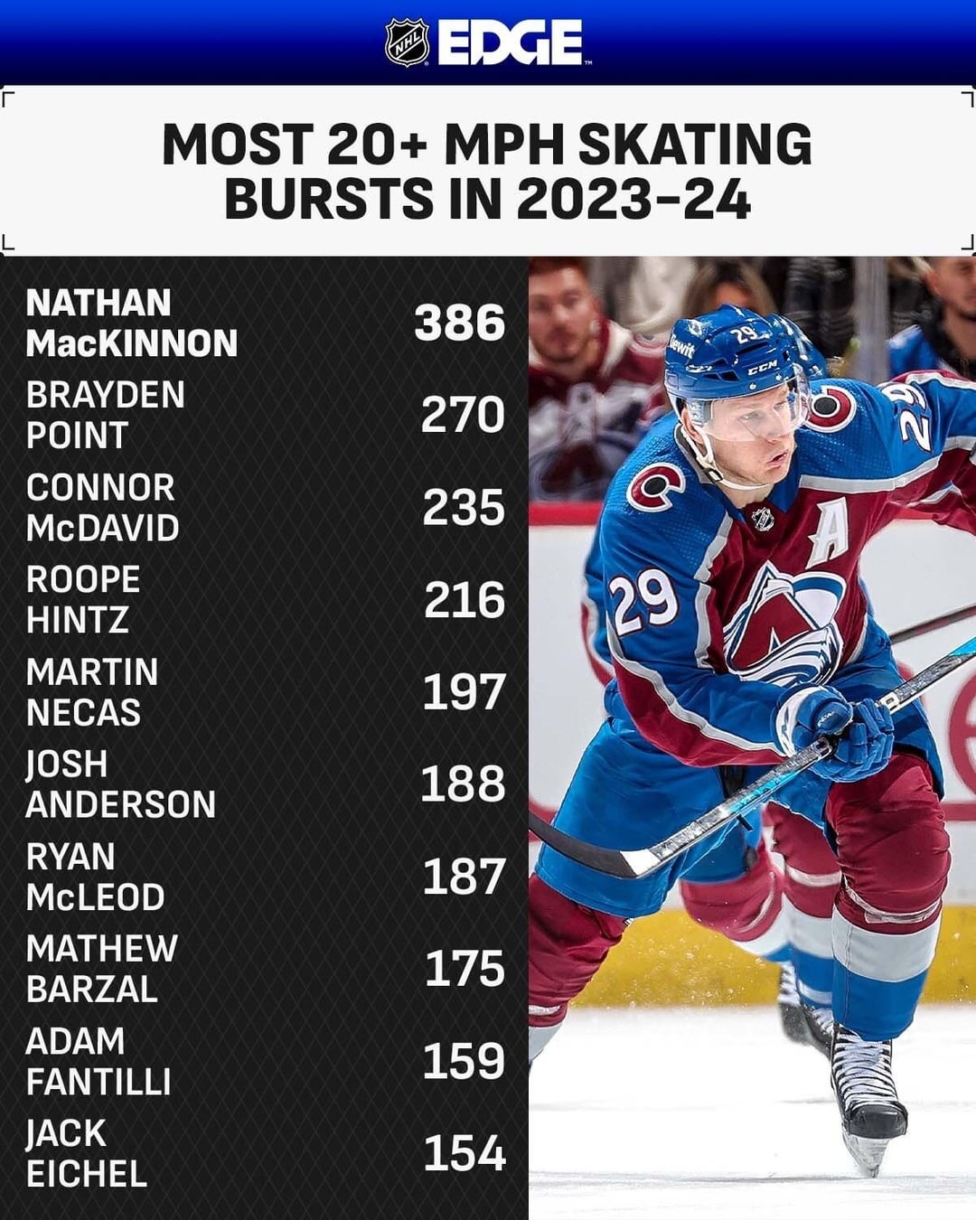 Seeing McLeod on here is not surprising for the fastest skater, sometimes if you aren’t paying attention he looks like McDavid due to his speed, but the fact he’s on the second list is really surprising since he has 2/3rds of the ice time McDavid does being a 3rd liner. Quite impressive, I hope he keeps developing as he is fun to watch.