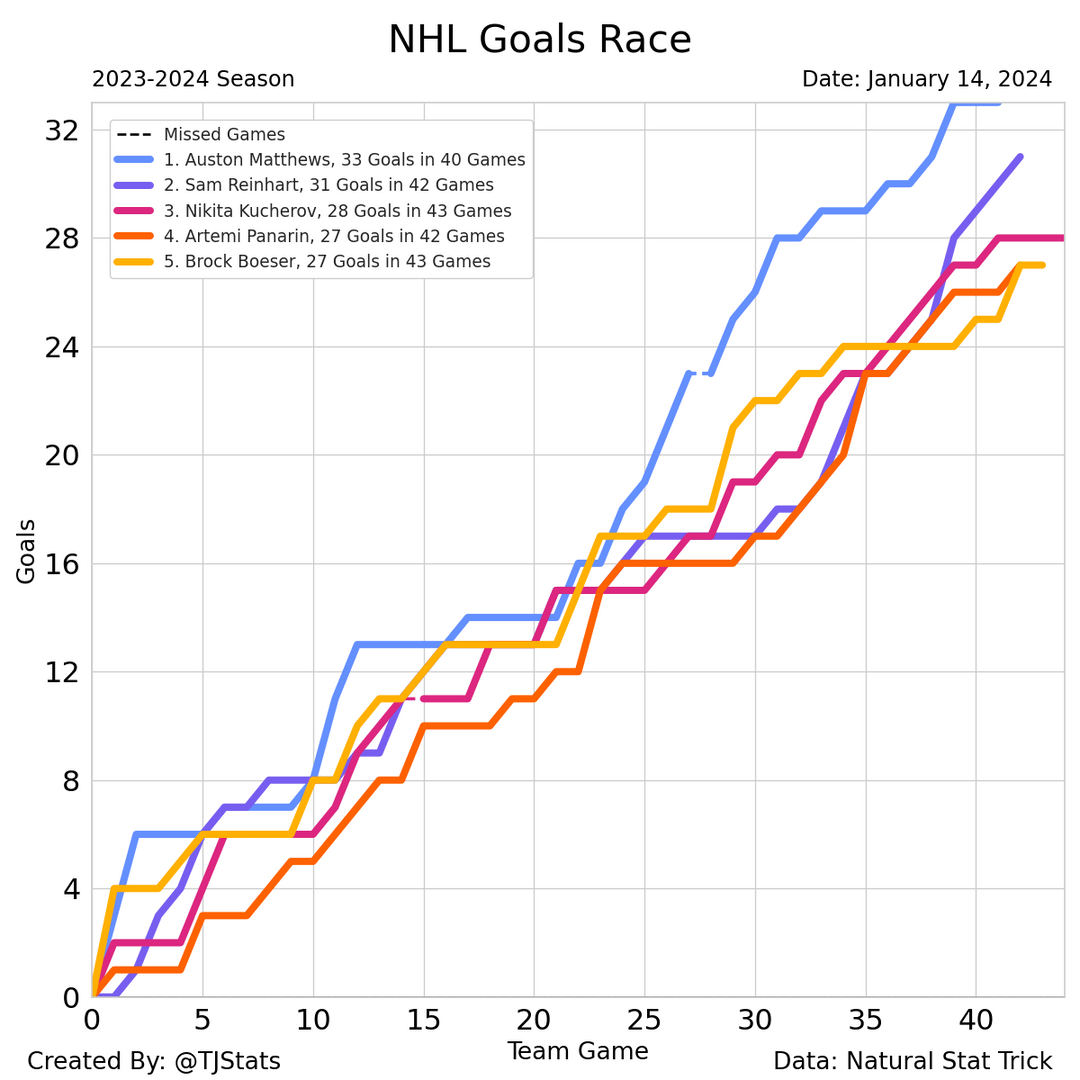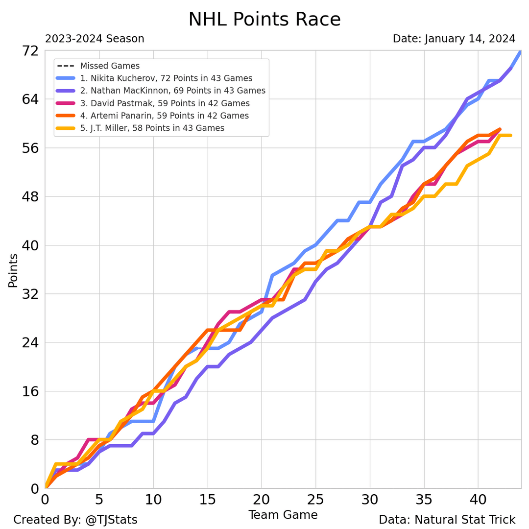 NHL Art Ross and Rocket Richard Trophy Races – January 14, 2024
