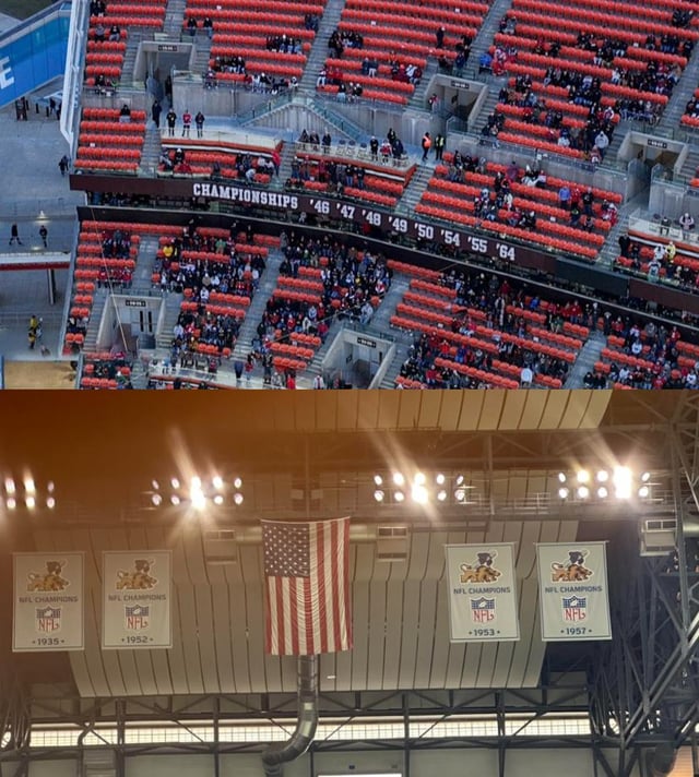 Some stadiums list their division title wins? There isn’t even enough stadium space for some teams to do that. A few teams, Bears, Giants, Cowboys have 24-25 each, and the Packers have 31? https://www.pro-football-reference.com/teams/