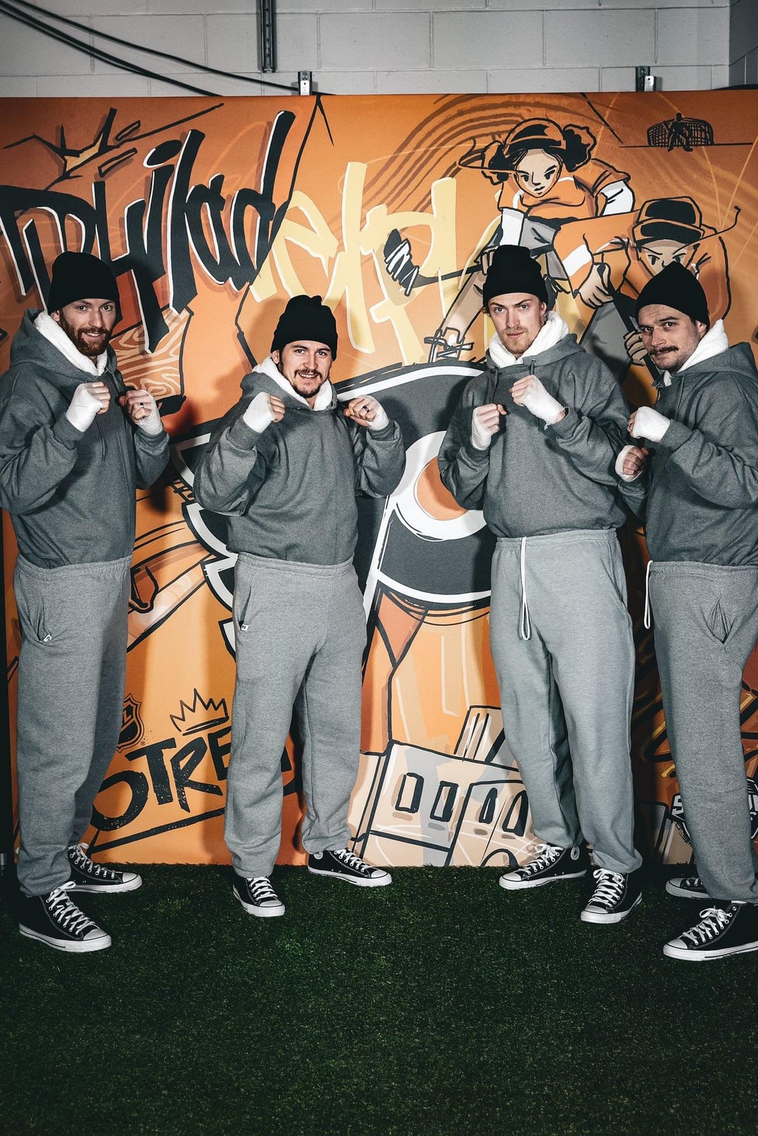 [Flyers] The Flyers dressed as Rocky for their arrival outfits for the Stadium Series! π₯