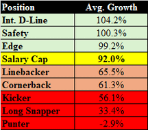 The only surprise here is corners only getting pay increases at 2/3rds the rate of the cap increase considering how much the league has shifted towards passing