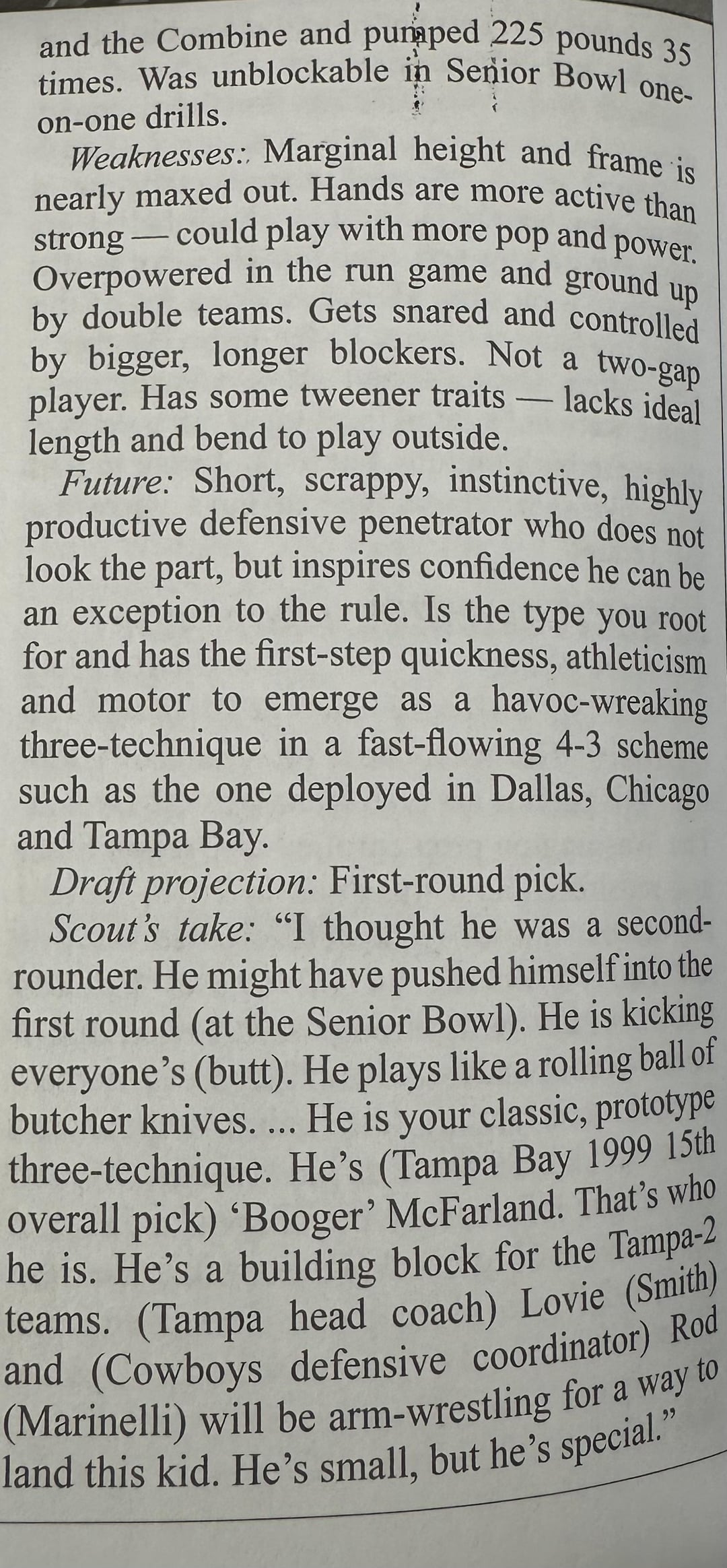 1. >>He’s (Tampa Bay 1999 15th overall pick) ‘Booger’ McFarland. That’s who he is.