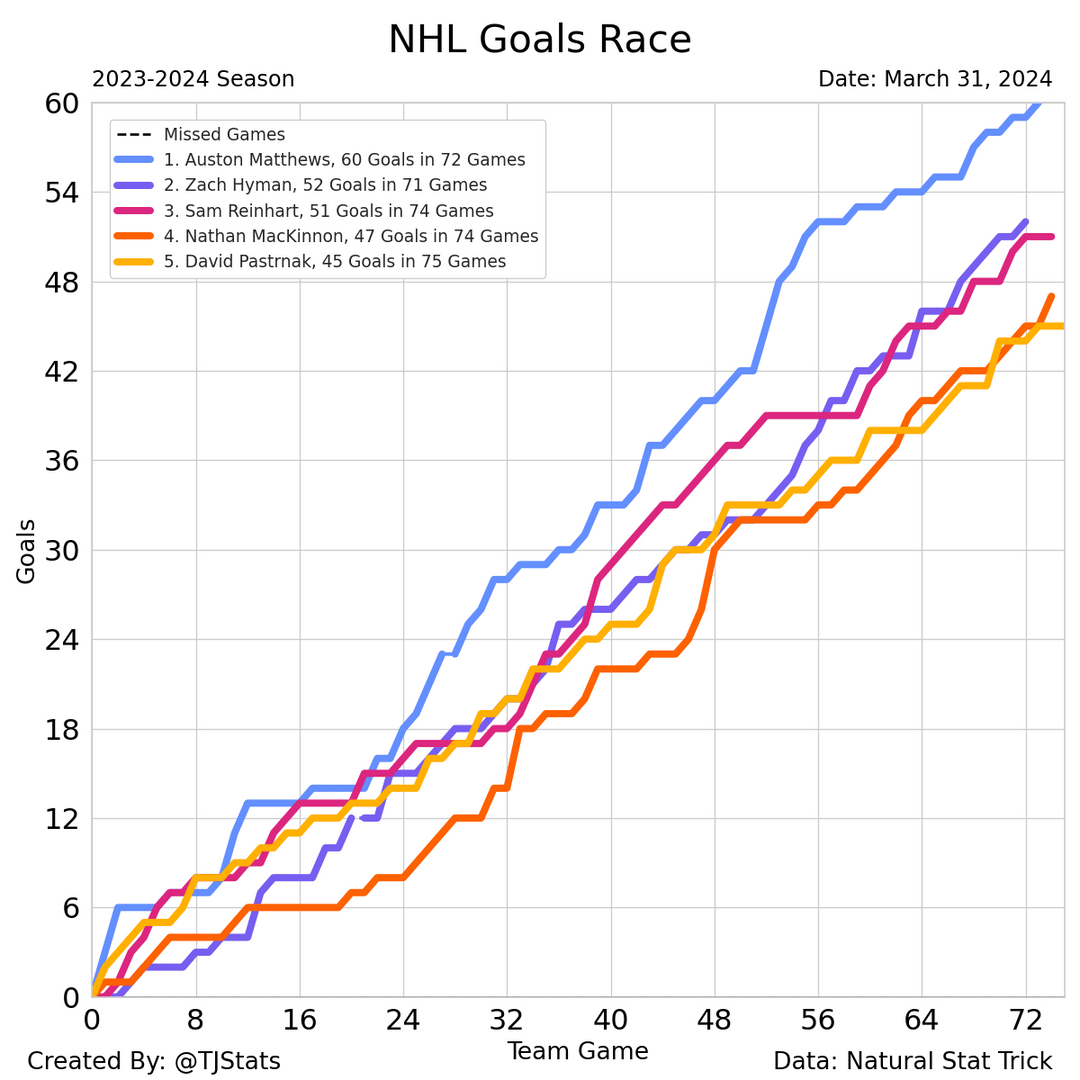 Imagine if Hyman overtook Matthews in the goal race. It won’t happen, but it would be very funny
