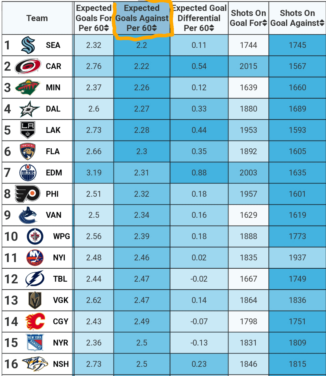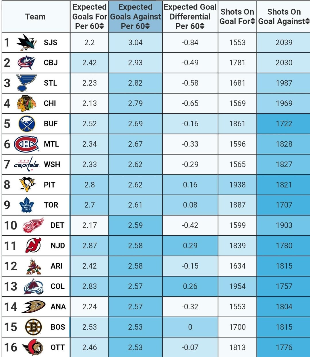 1. Crazy to see Edmonton’s expected goal difference is greater than San Jose’s is bad.