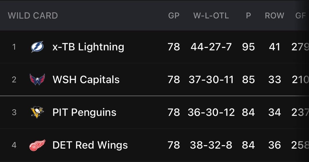 It’s a must win for the Pens too. Whichever team loses is all but eliminated while the winner IMO is likely to end up being the final WC team if the Caps can’t win out. Both teams are pretty much in the exact same situation.