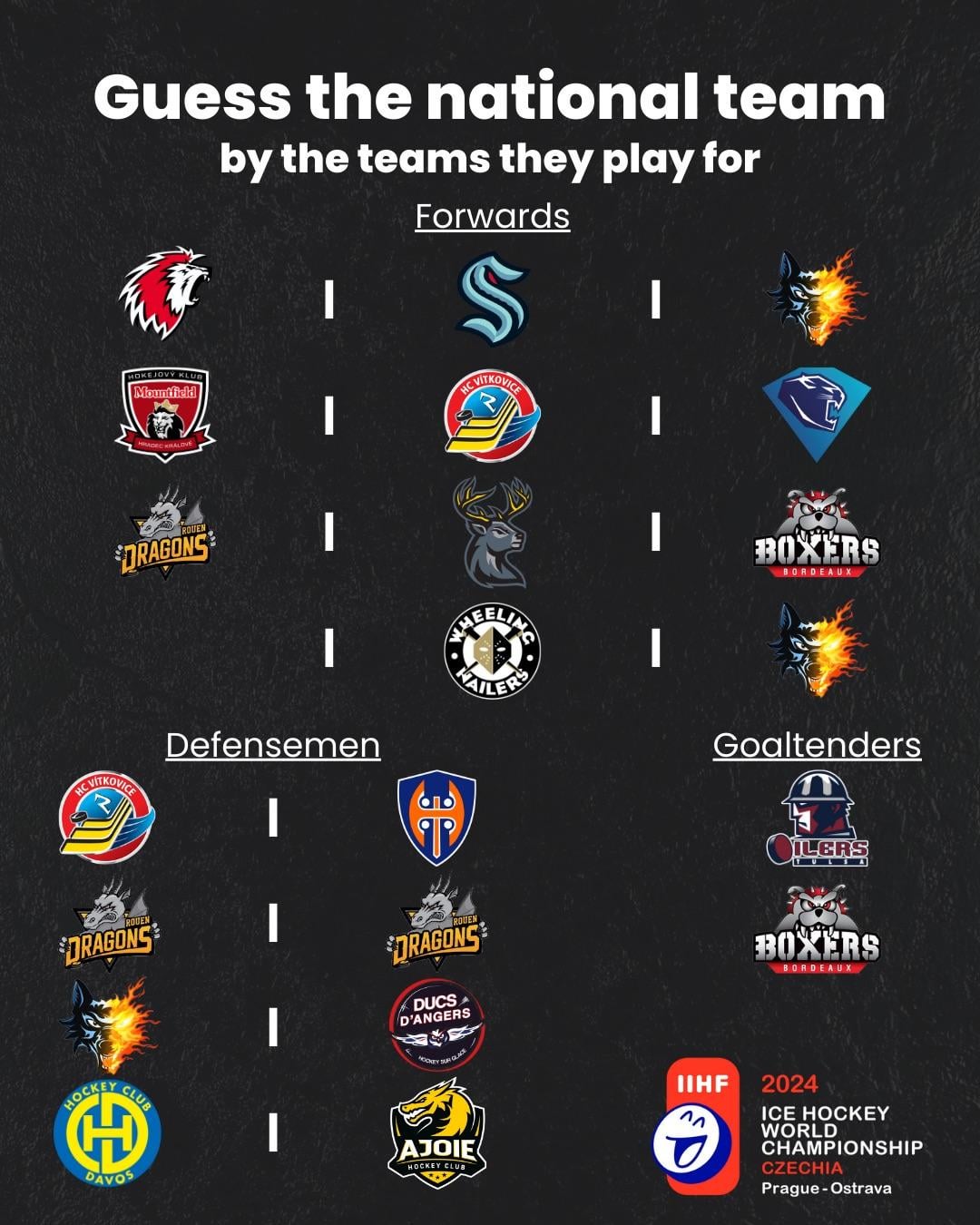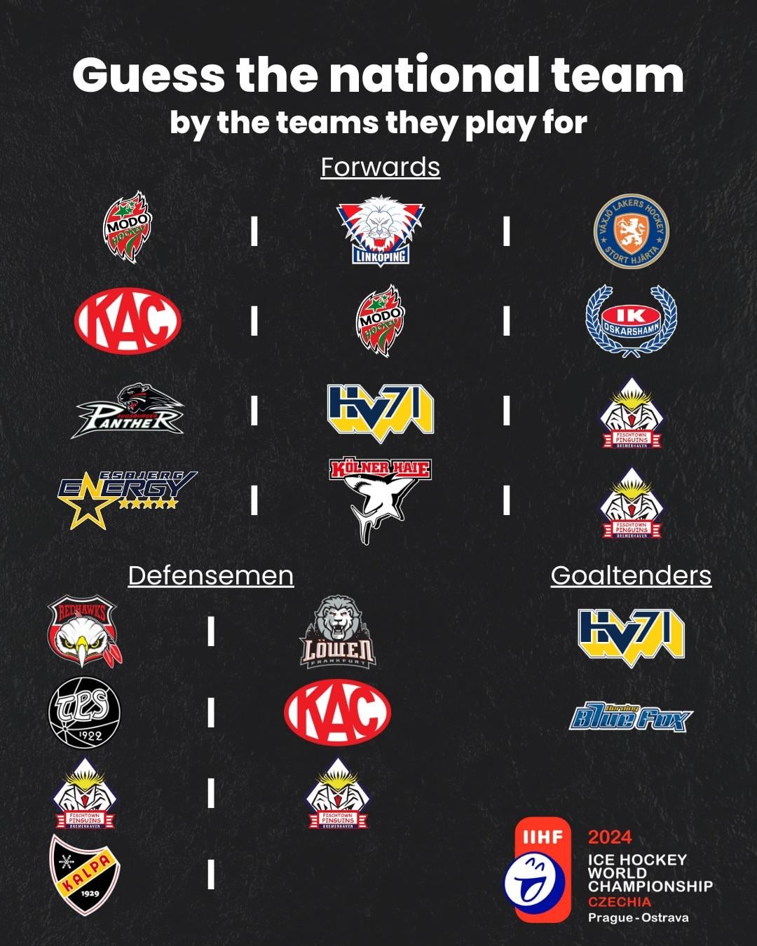No WC games today so we’ll test your hockey knowledge, do you know these national team rosters by who their players play for in club action?