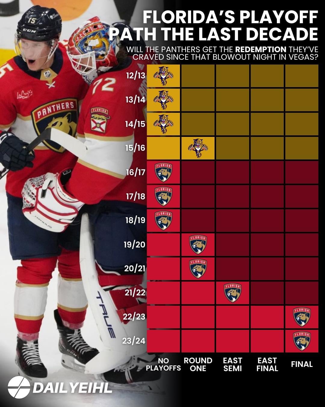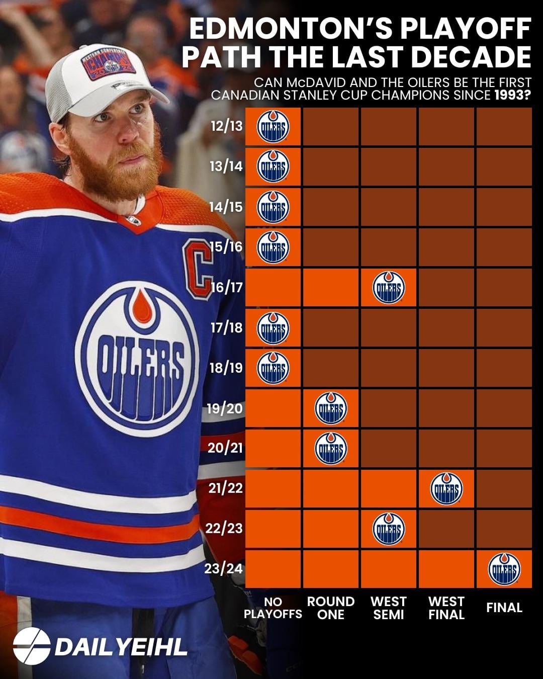 Not EIHL or IIHF related for once but since the 2024 Stanley Cup Final is approaching here is a graphic on both of this years finalists playoff paths since 2013