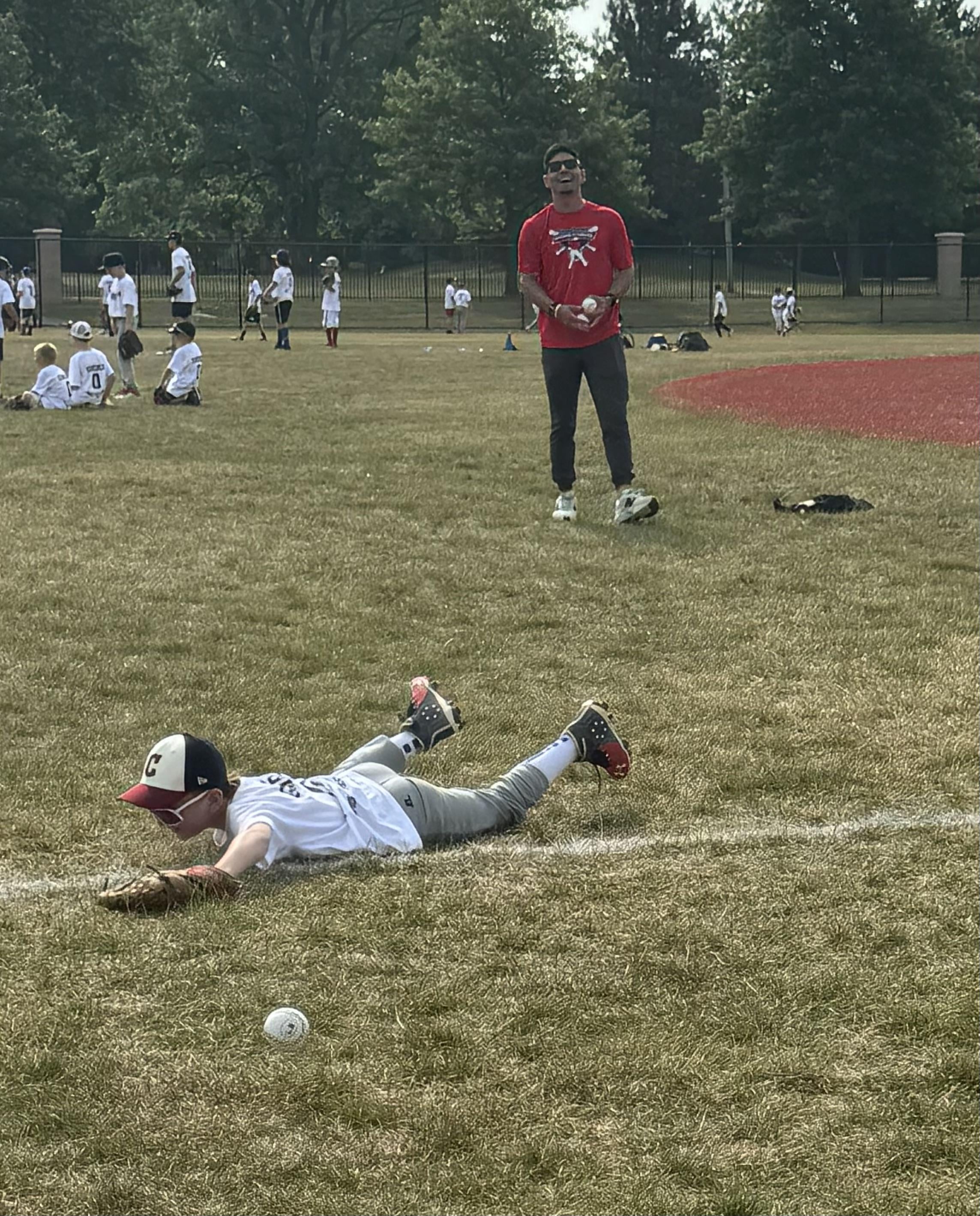 Awesome picture of my son and Giminez at the pro camp yesterday. He said my son was making it look too easy so threw him a hard grounder and my son laid out in a dive for it. They both got a good laugh out of it.