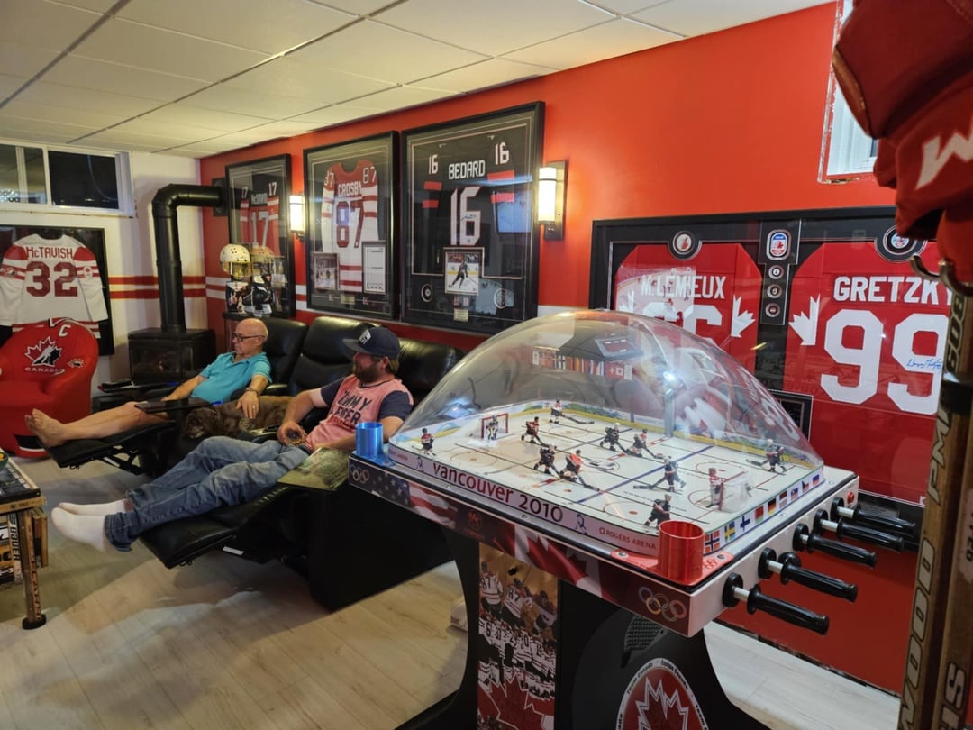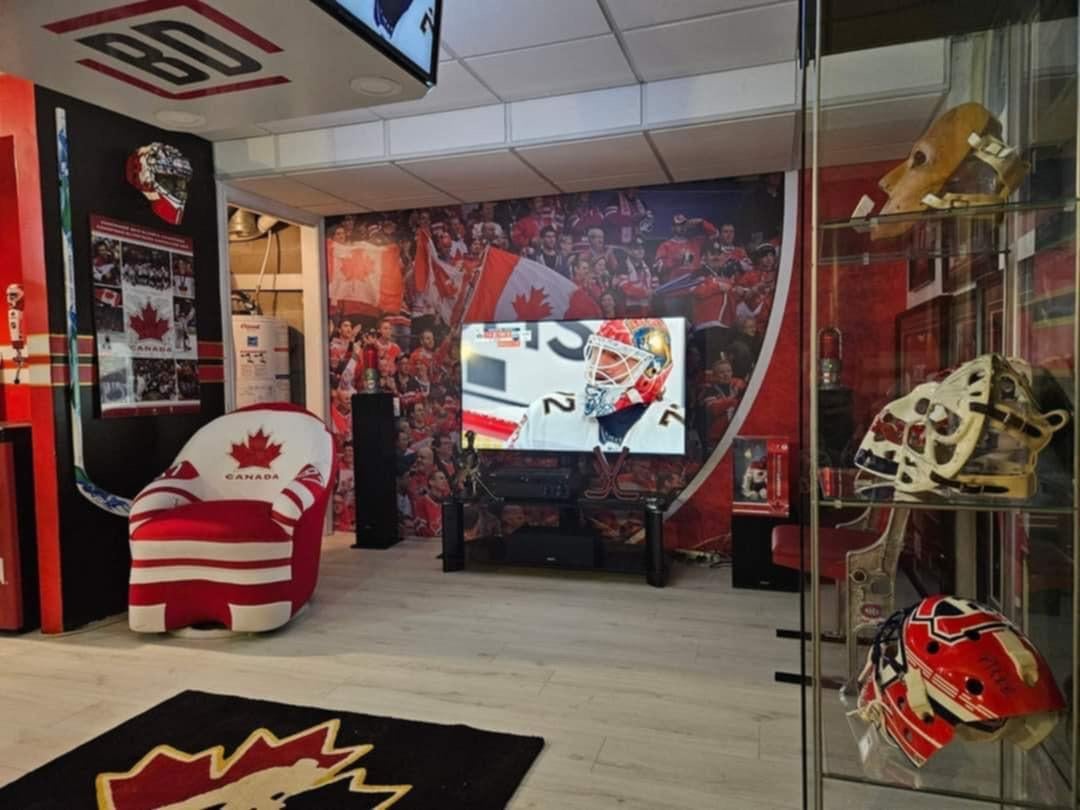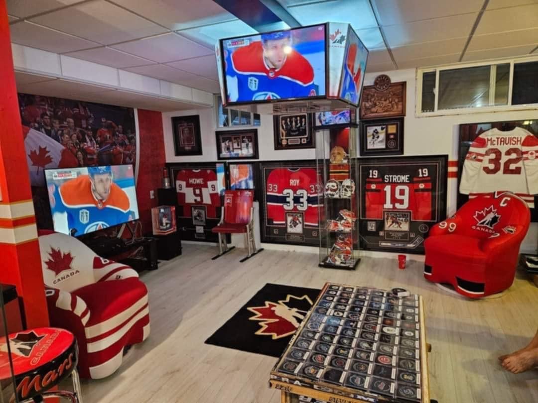 As the number one fan of the Sudbury Wolves and Team Canada at the World Juniors, Eric has traveled to countless games, from Toronto to Montreal, Buffalo to Ostrava, Gothenburg to Ottawa. But Eric's dedication goes beyond just attending games. He recently completed a brand-new, fully renovated basement dedicated to his beloved teams – the "Beaudry Hockey Den".