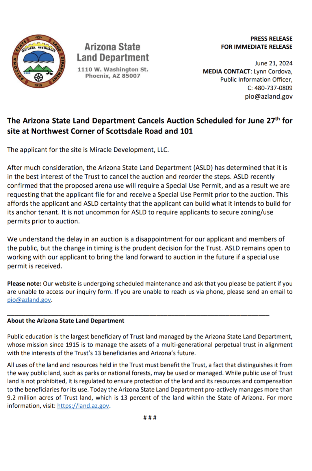 "After much consideration, the Arizona State Land Department (ASLD) has determined that it is