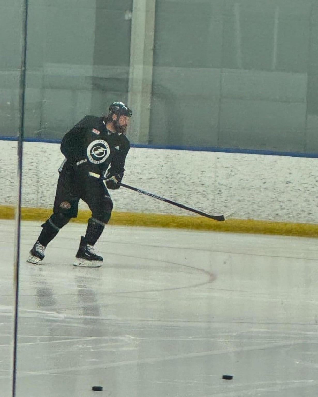 Pat Maroon skating with other Lightning players in Brandon today. Killorn and Sustr are also there.