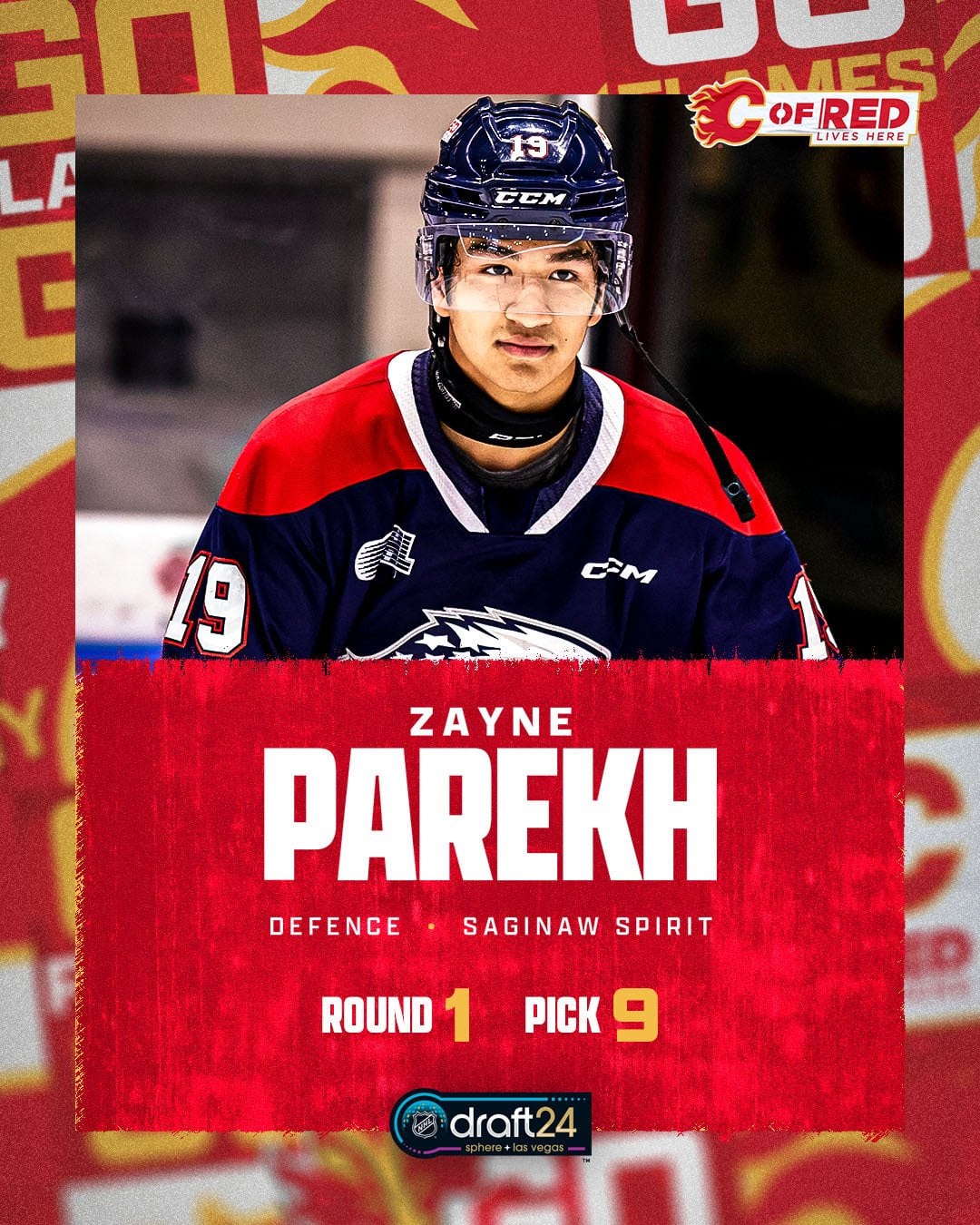 The Flames select Zayne Parekh with the ninth overall pick