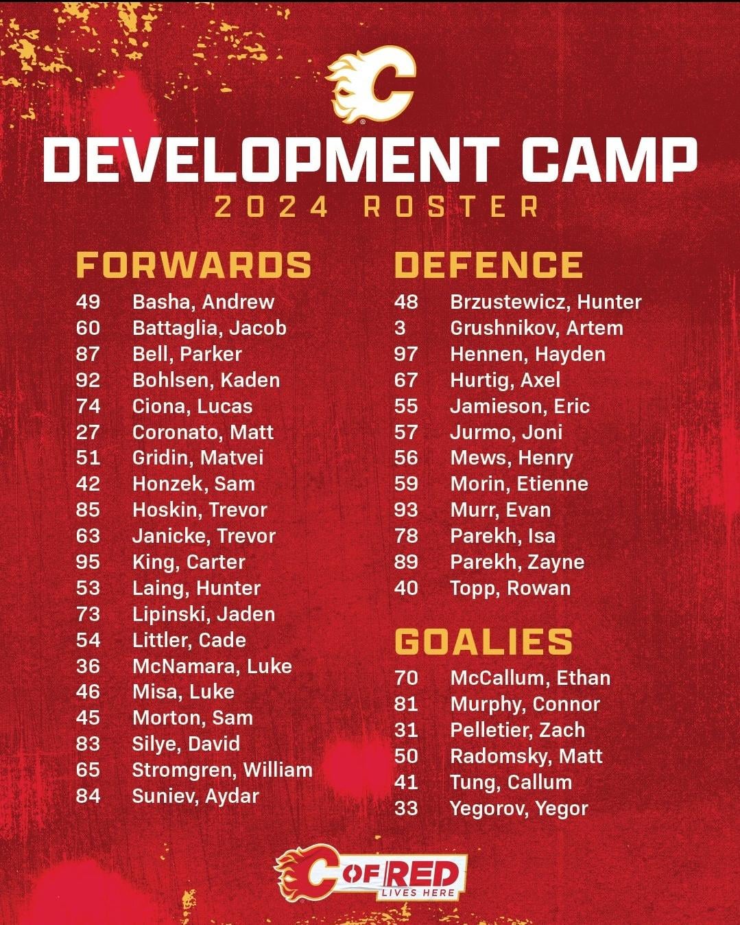 Flames Development Camp 2024 Roster