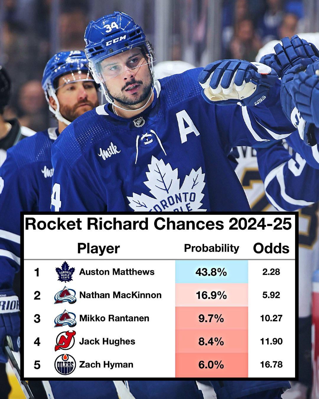 Auston Matthews is the betting market’s projected Rocket Richard winner in 2024-25 by a long shot Leave a ReplyYou must be logged in to post a comment.