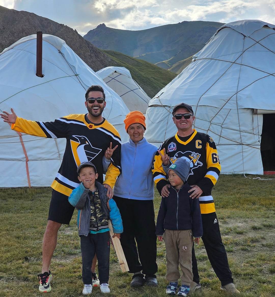 I decided to gift him one of my jerseys I had, sadly, I don't have a Malkin with me but he was STOKED nonetheless! He couldn't believe it. He might be one of the rarest of Pens fans or just NHL fans in general really! I tossed on another jersey I had and took this photo with the family! Such a cool experience!