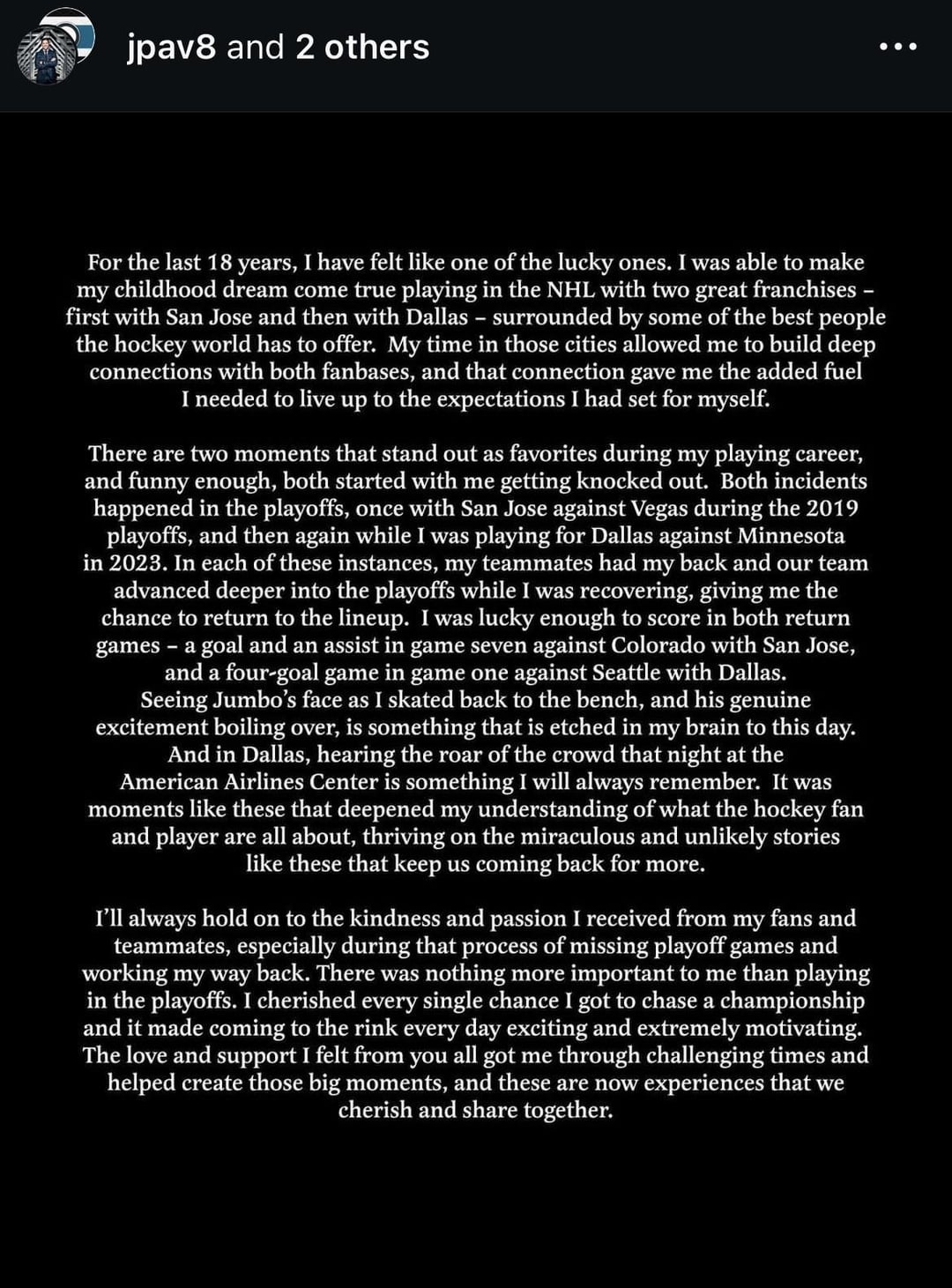 3. The end of an era. Hard to believe that Marleau, Thornton, **and** Pavelski have all retired now. It felt like they would be playing in the league forever