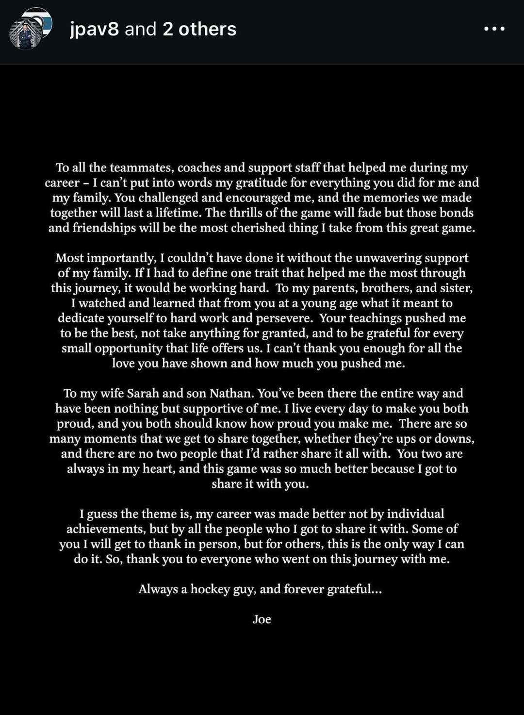 14. I misread the title as “A letter to Pavelski” hehe. Would have liked to see him hoist the cup once.