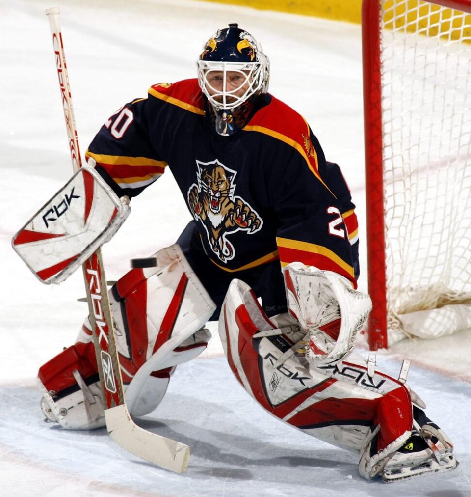 Niemi rocking a Penguins blocker/glove combo in a Panthers jersey is crazy. 5 GP across those two teams combined.