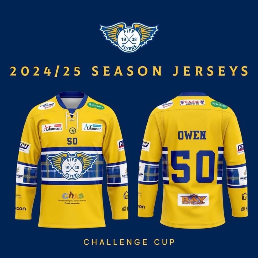 The Fife Flyers (🏴) have revealed their jerseys for the 2024/25 EIHL season! 3 comments I like the tartan hem on the white jersey and the chest stripe on the yellow Not a fan of the blue jersey though Oh Phaneufs in this? If they wear blue tartan pants, that would take this to the next level Leave a ReplyYou must be logged in to post a comment.