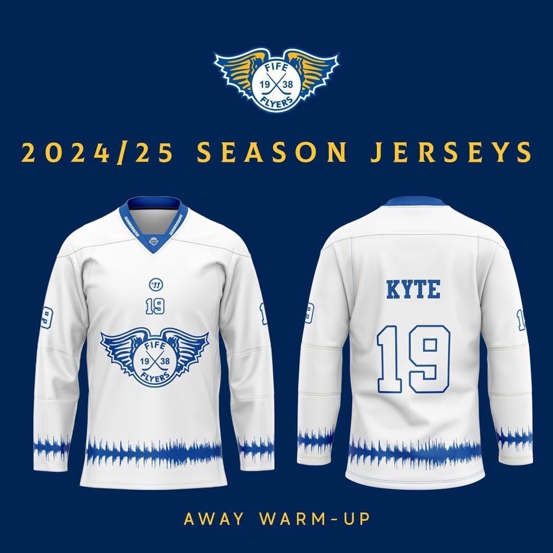 The Fife Flyers (🏴) have added an audio visualisation design on their home and away warmup jerseys of their fans chanting from last season