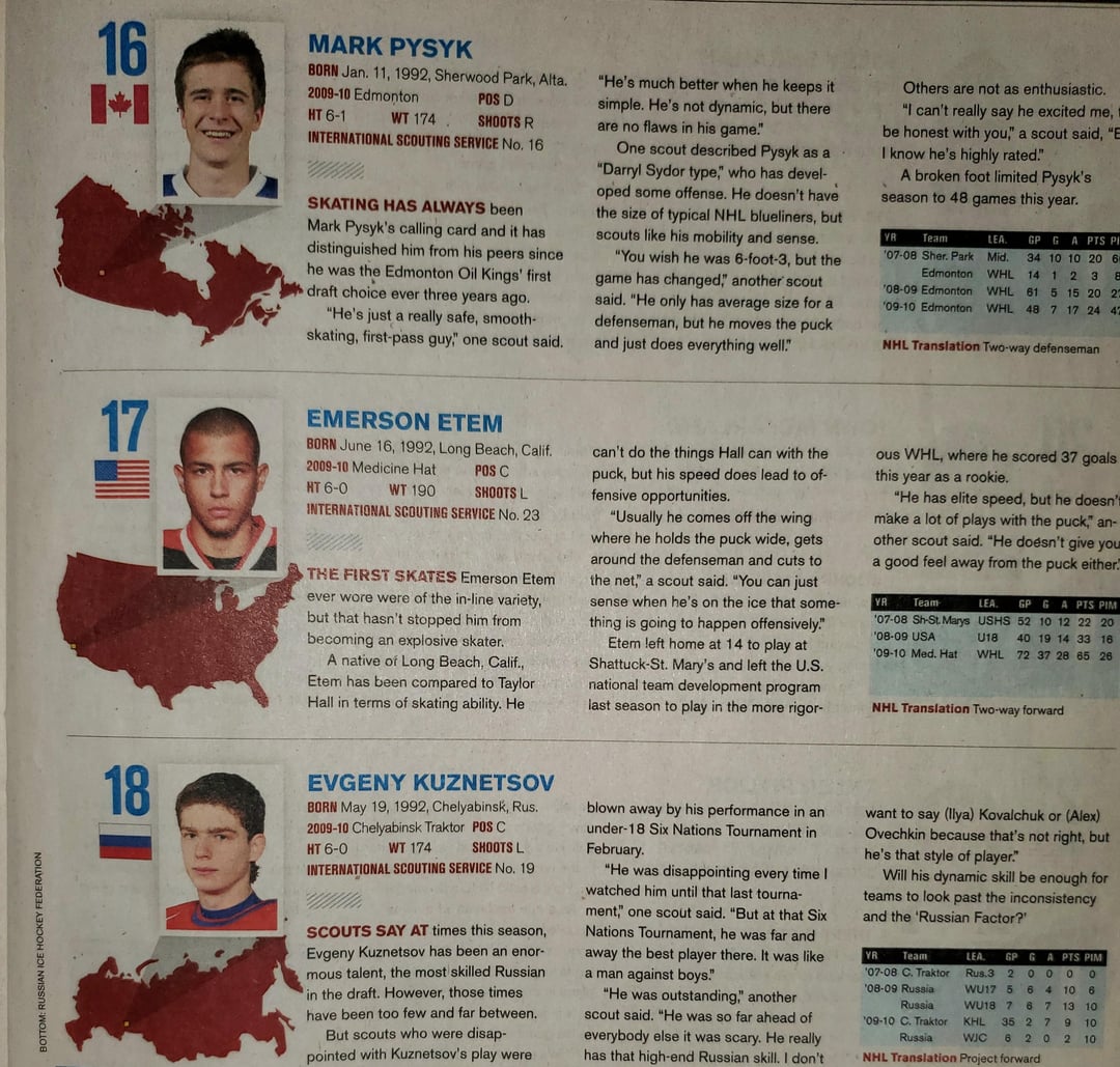 3. Some big steals this draft. Gotta think Tarasenko and Kuznetzov are top five picks in a redraft. Stone, Klingberg, Freddie Andersen, Gallagher probably all go top ten and they were picked 130th+++. Fowler dropping to the Ducks was a steal.