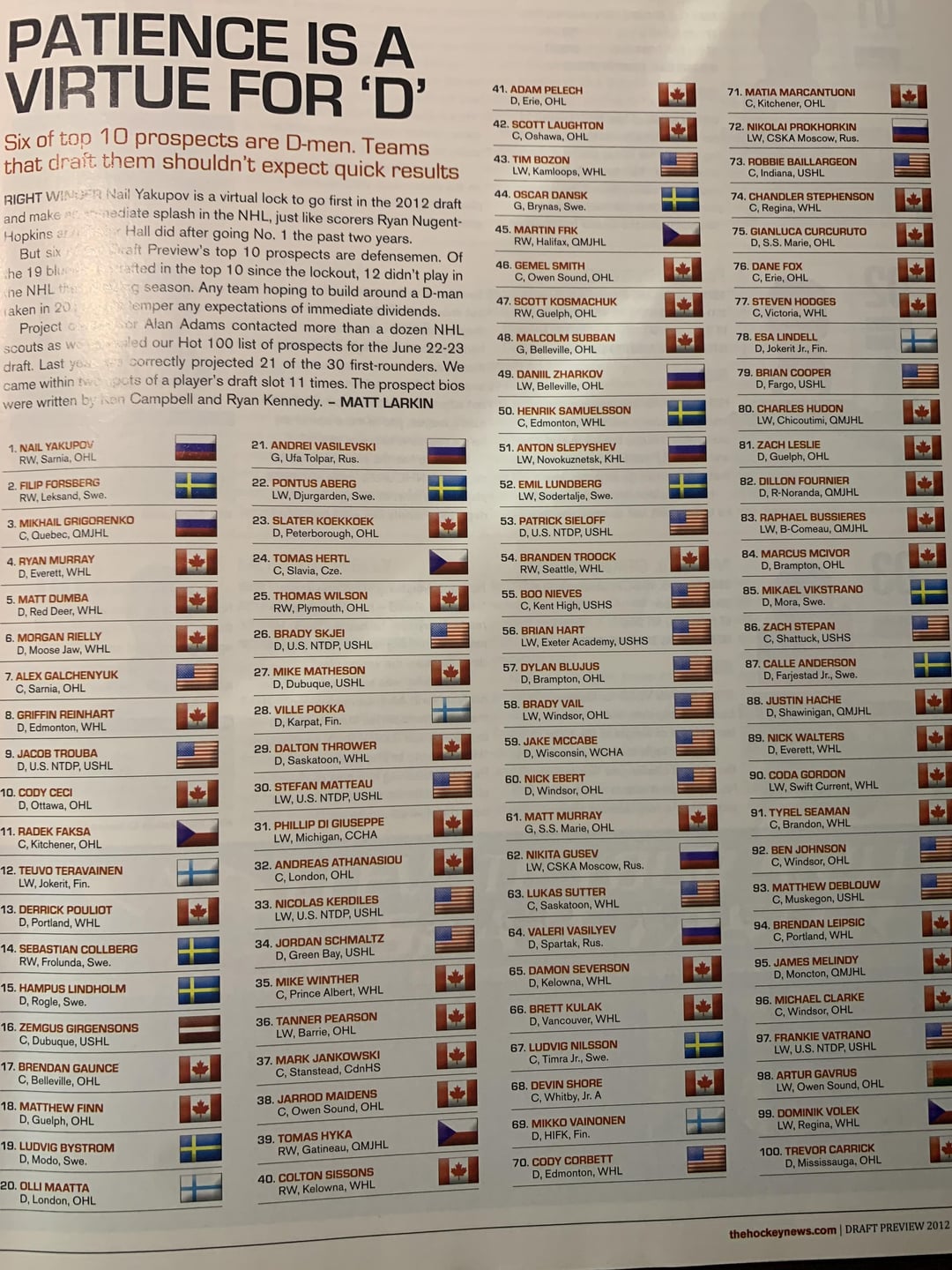 Outside of Vasy and Forsberg this draft class feels kind of meh in general. Love the preview of the next years draft. Some excellent names in that one.