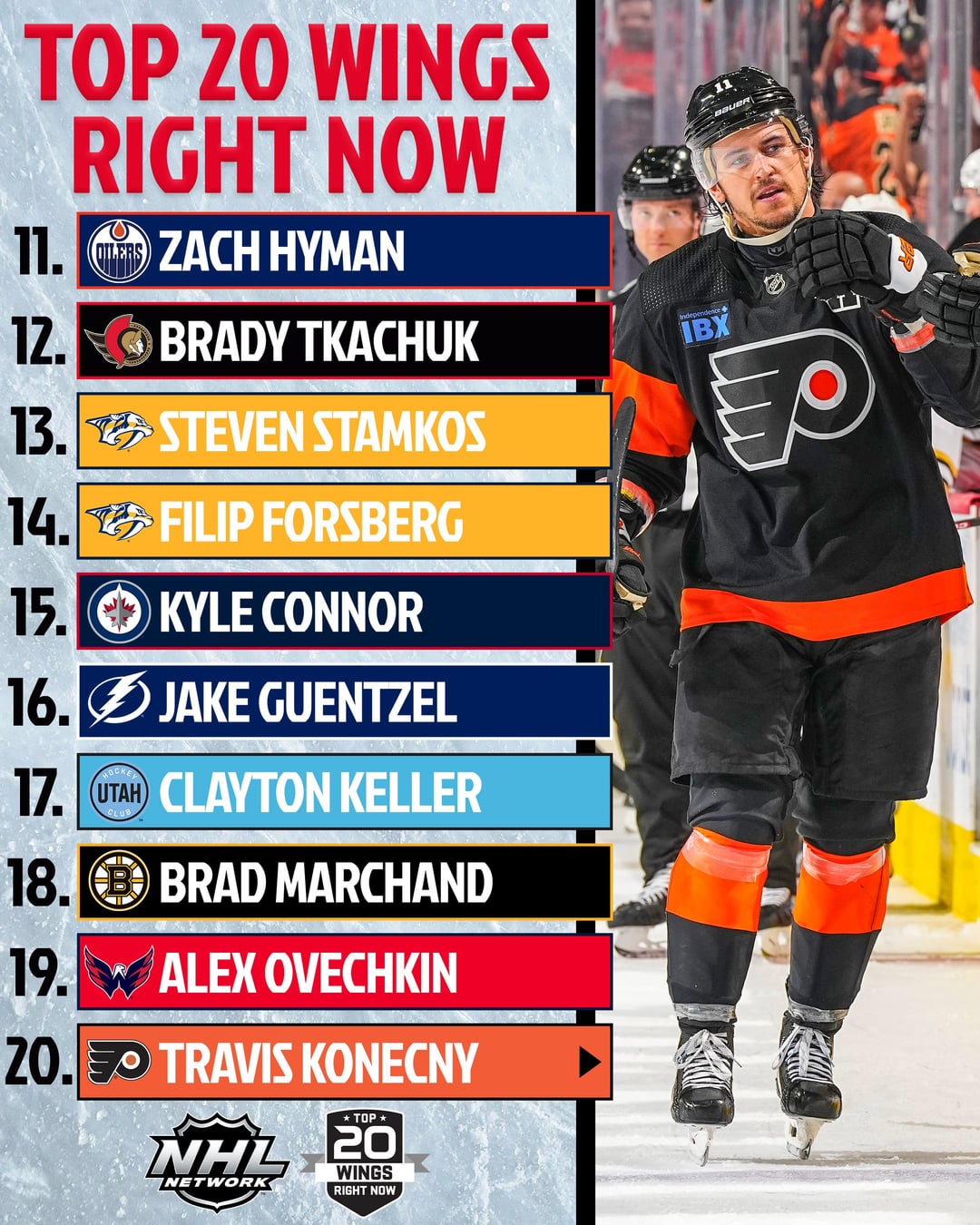 If Bratt isnt listed as a LW according to them and they really left him off in favor of Konecny than NHL Network continues its run of not knowing NHL hockey