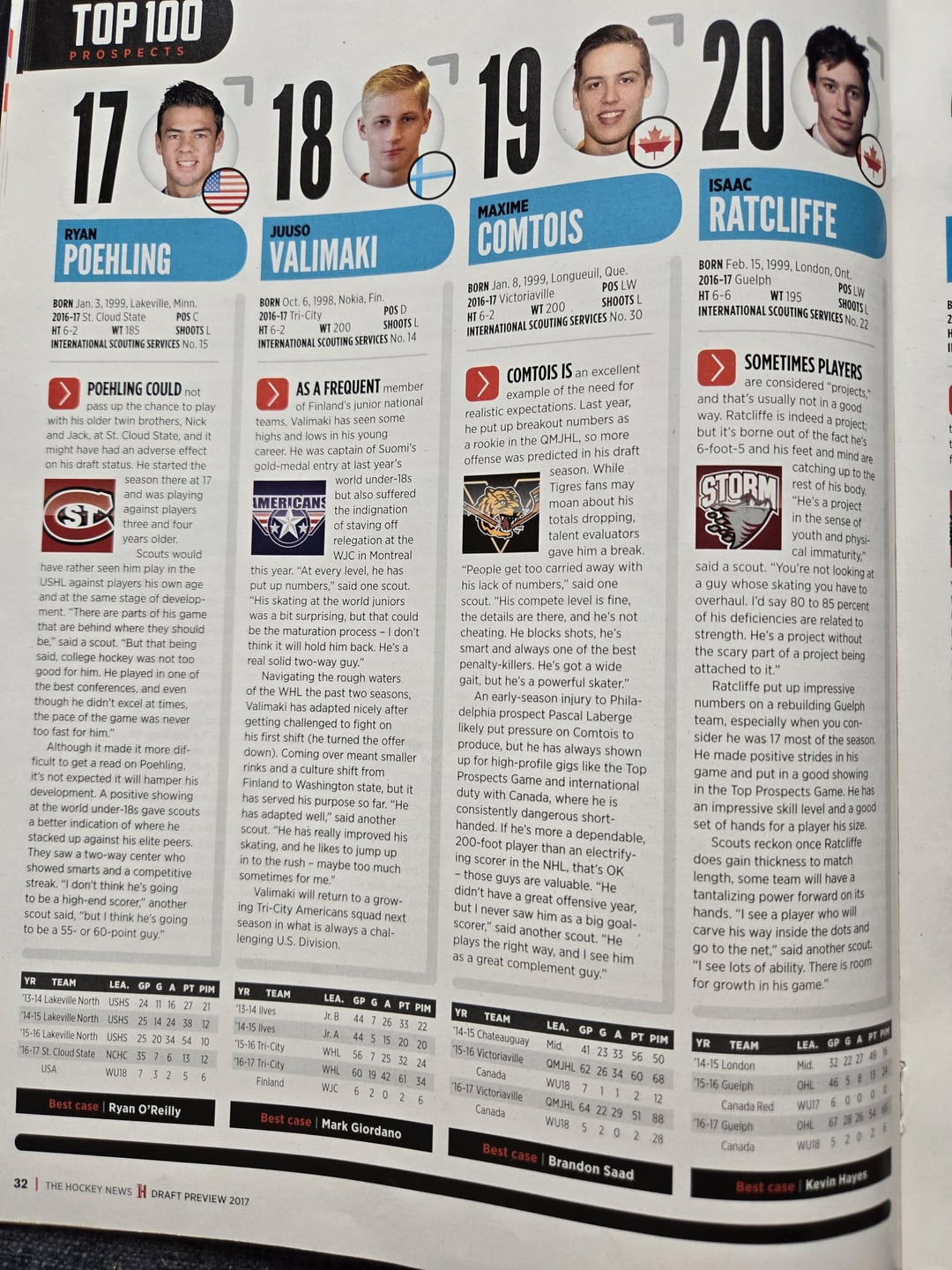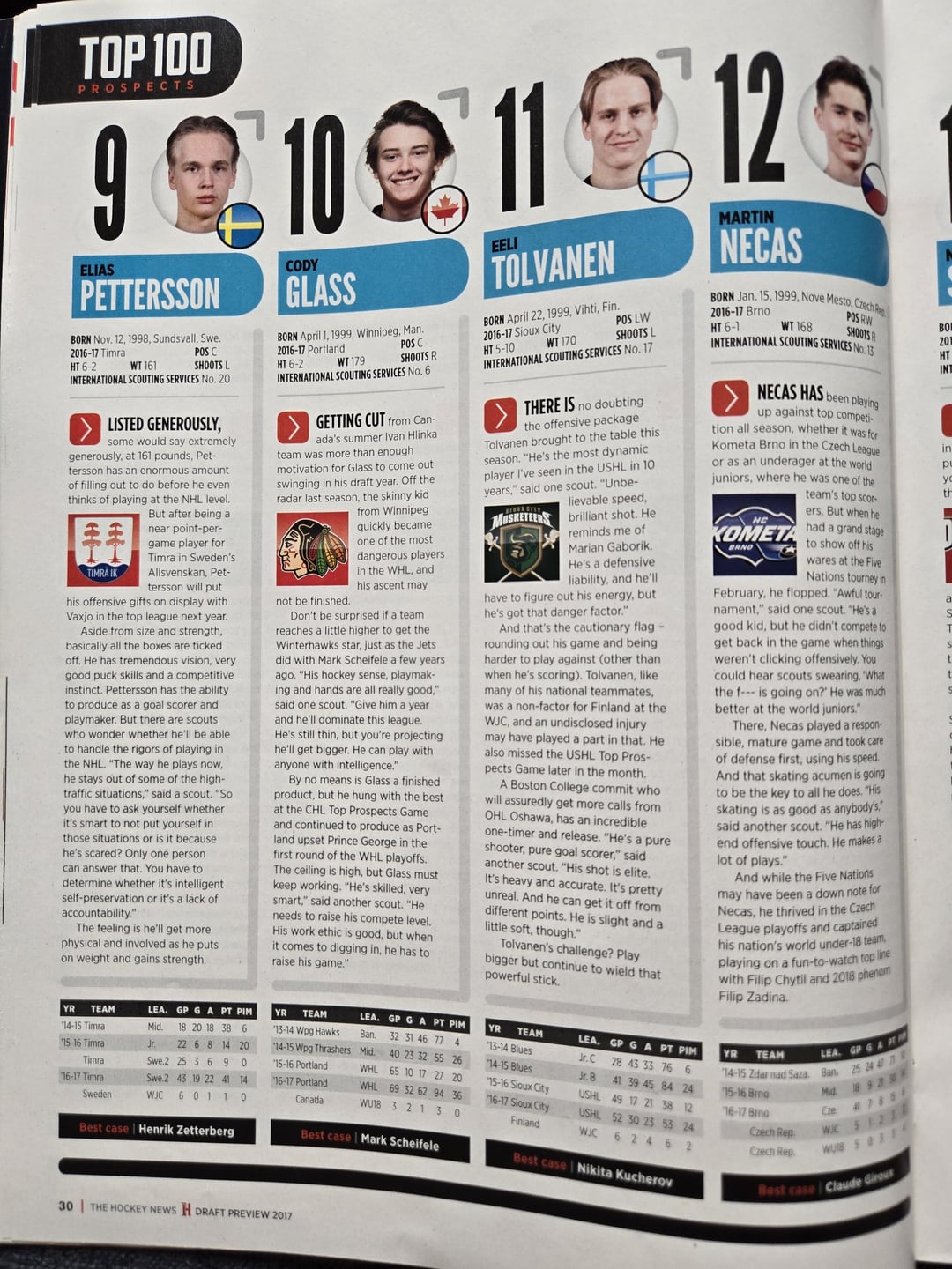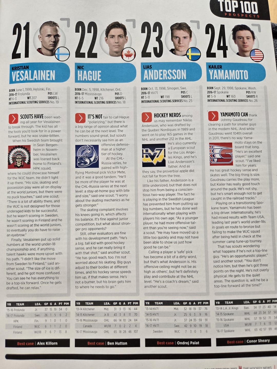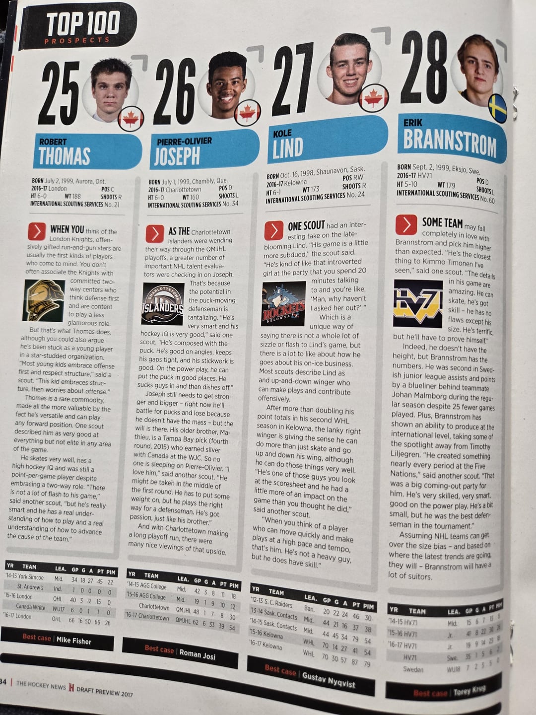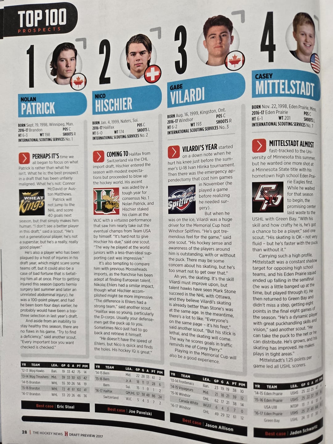 One of the few times THN missed on the first overall pick, having Nolan Patrick first instead of Hischier.