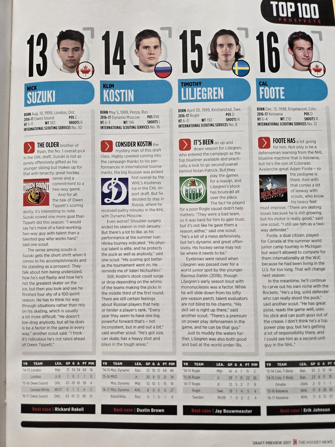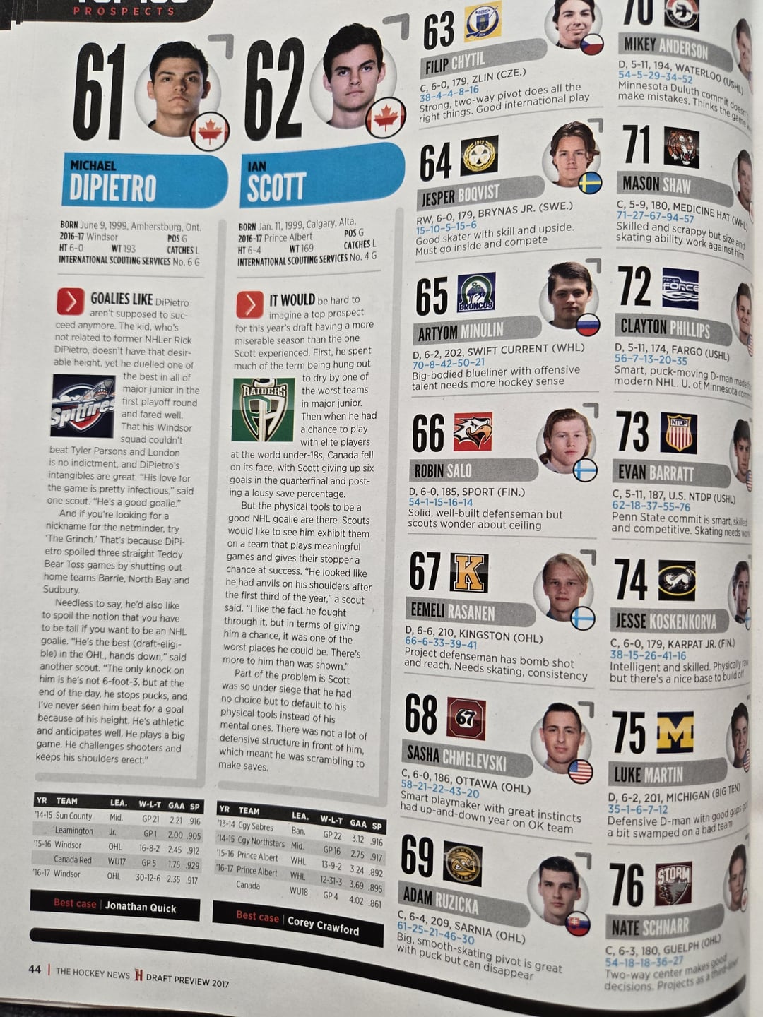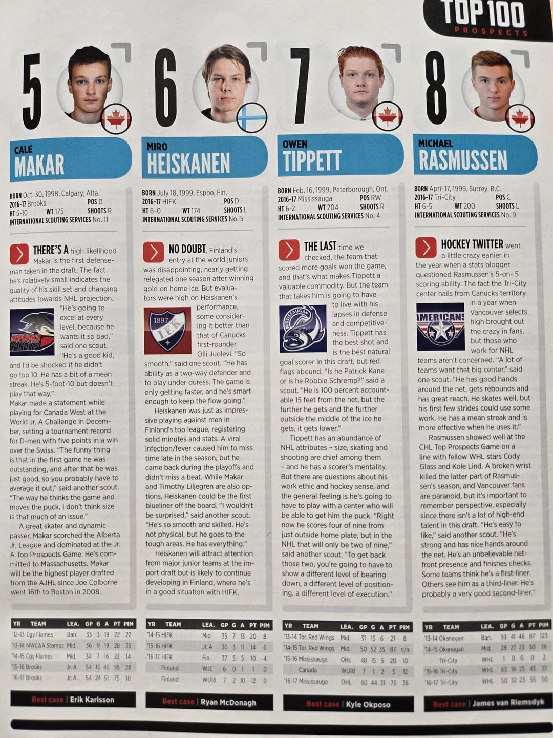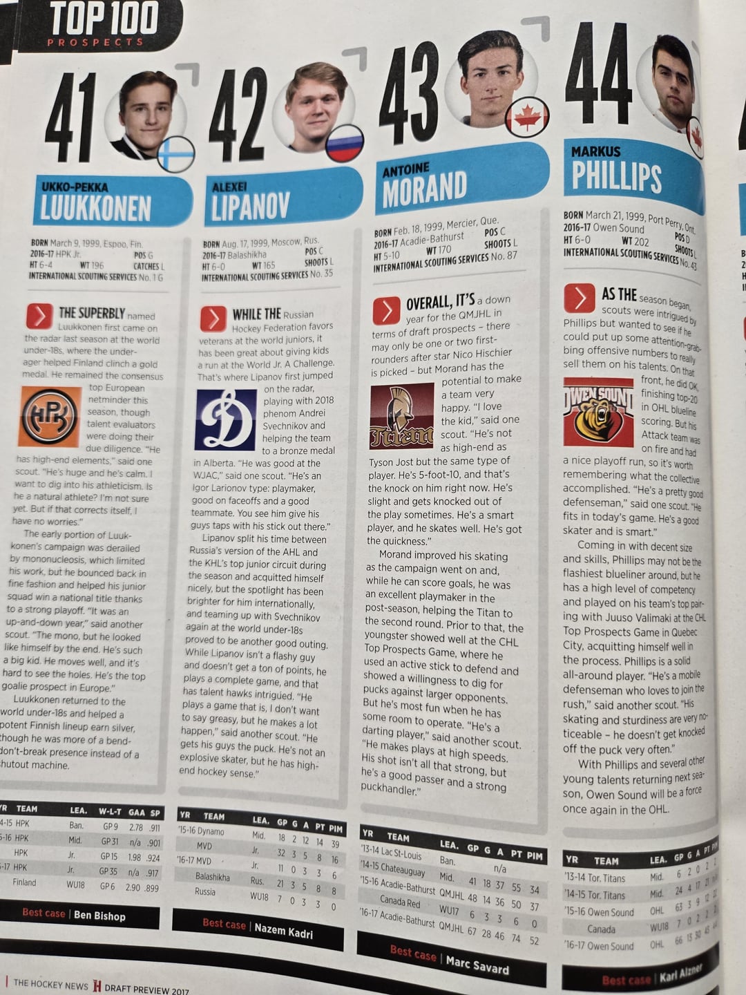One of the few times THN missed on the first overall pick, having Nolan Patrick first instead of Hischier.
